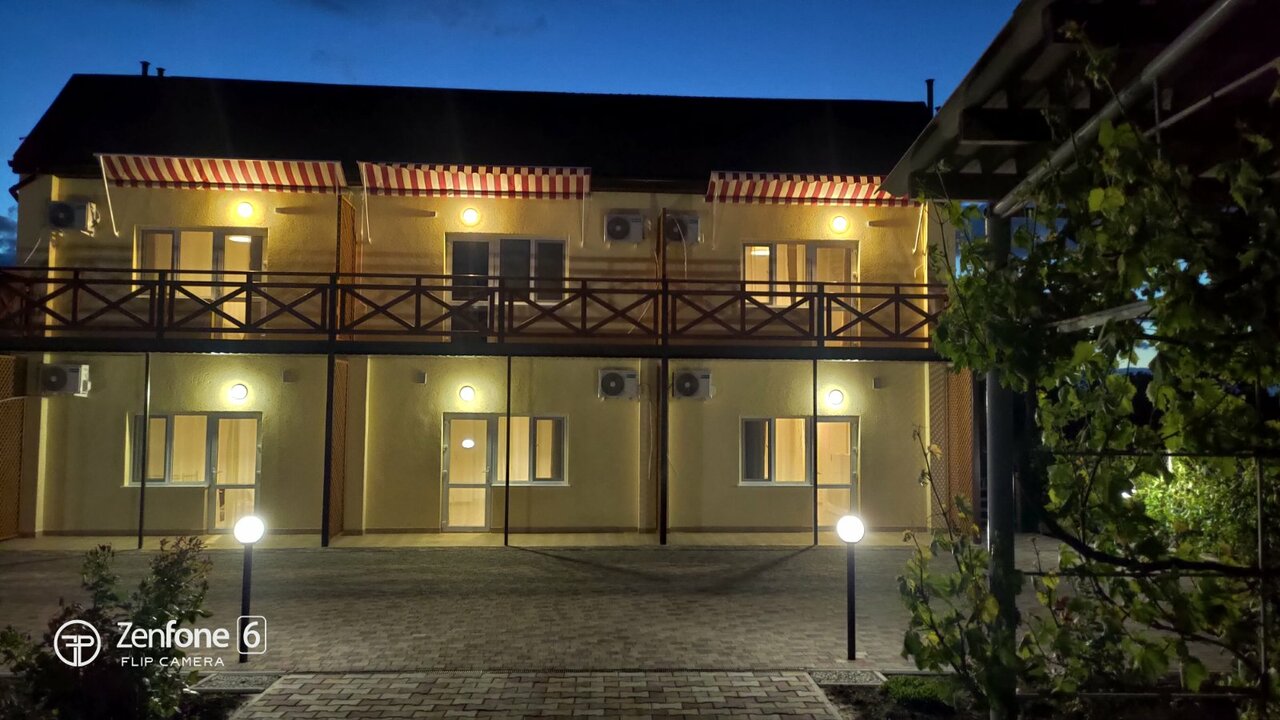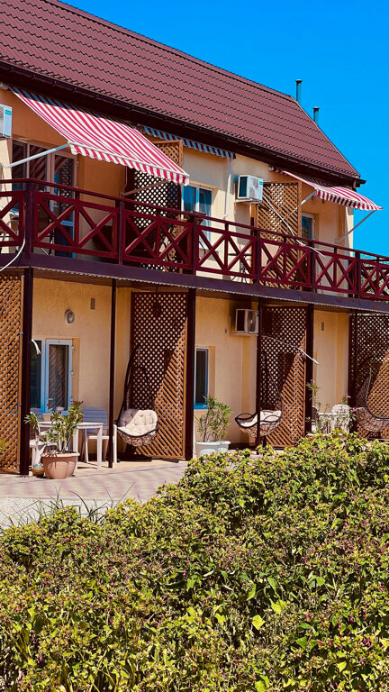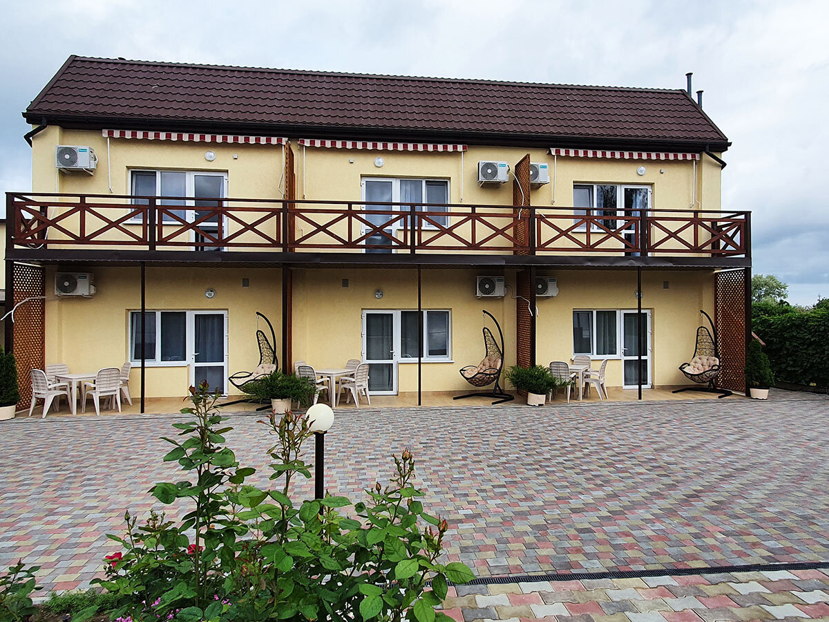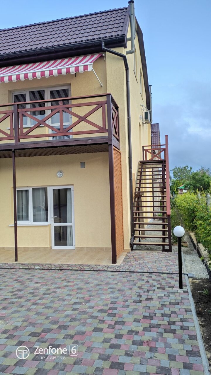 Отличный гостевой дом! Отдыхали в сентябре 2021 года. Хозяйка Ольга с командой сделала все возможное, чтобы гостям было удобно и комфортно. Мебель, белье, сантехника новое, чистое. Вообще дизайн приятный, европейского уровня. В номере телевизор, холодильник, чайник, фен ( мы жили в мансарде). На территории есть типа столовой на открытой террасе, повар Катюша прекрасно готовит. Есть кухня, можно приготовить самим. Белье, полотенца меняют очень часто ( спасибо Люде). До моря 5-7 мин ходьбы. Море чистое (несколько дней было испорчено медузми, но это проблема всего Азовского моря), народу очень мало ( правда мы были в первой половине сентября) . Немаловажный плюс гостевого дома- можно с собаками! Из пожеланий: мне кажется, что если приезжать в высокий сезон, то на самостоятельной кухне будет очередь, все-таки она маловата.