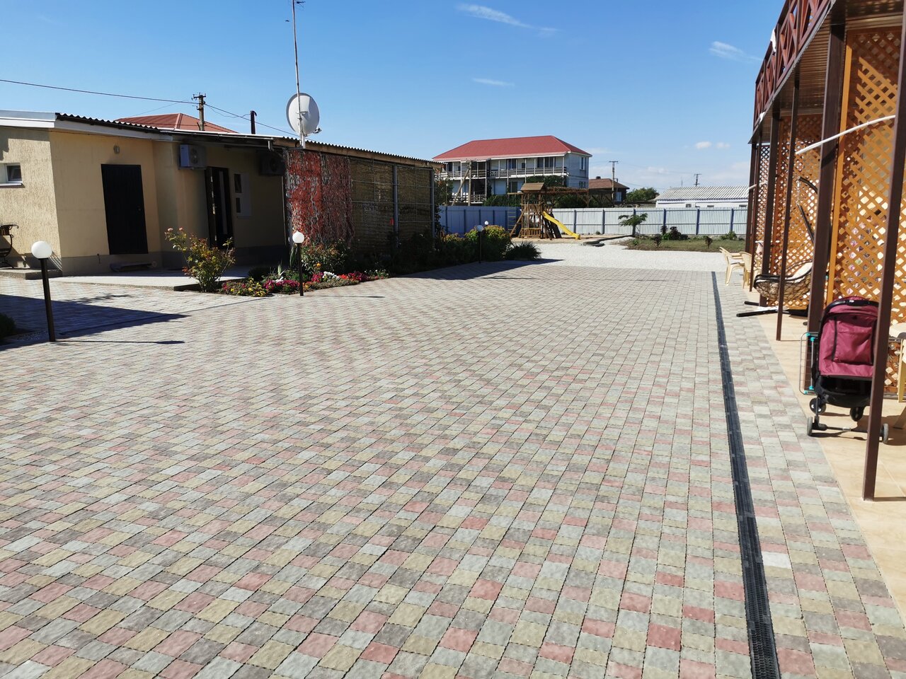 - Красивая и ухоженная территория с цветами.