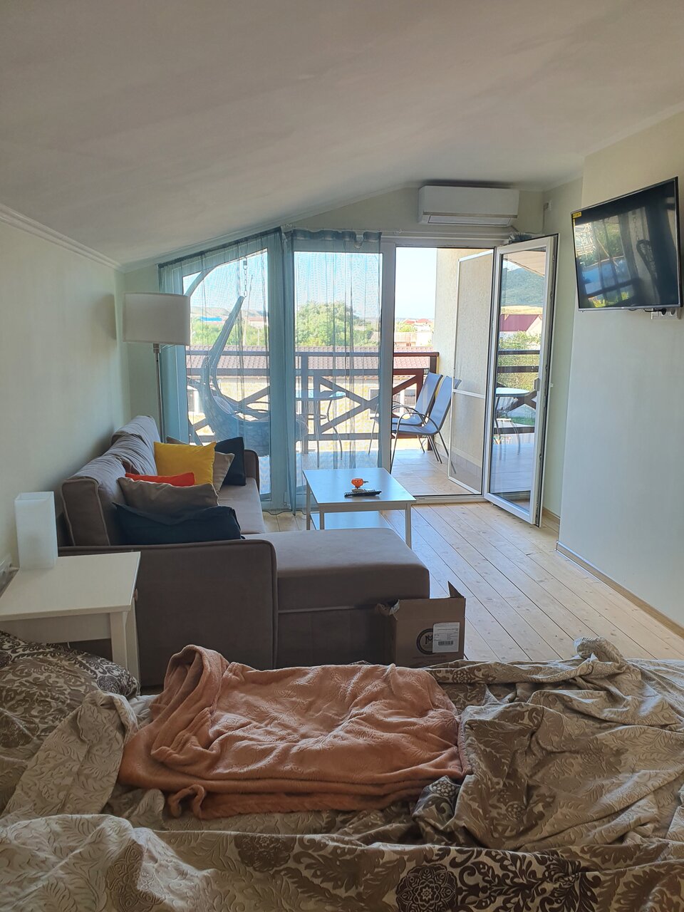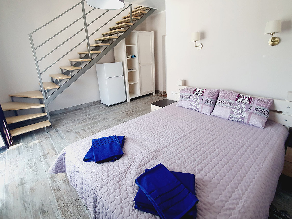 «Мансарда» идеально для пары или небольшой семьи. 31м2. В комнате: Wi-Fi, ТВ, холодильник, кондиционер, ванная комната с окном (душевая кабина, туалет и биде), большой балкон. Комфортная двуспальная кровать и угловой диван со спальной функцией.
