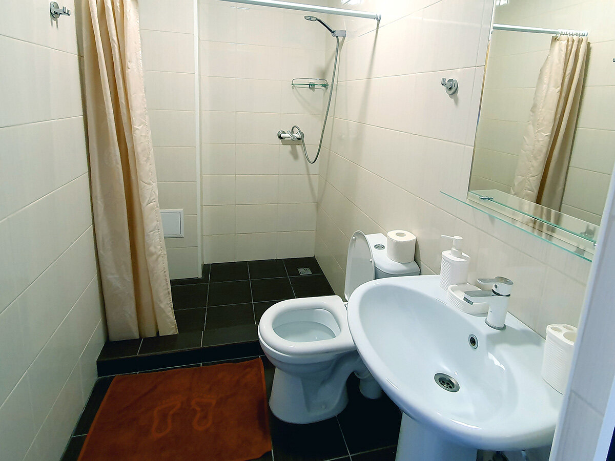 «Комфорт+» подходит как для семьи с детьми так и для чисто мужской или женской компании, 23м2. Есть: Wi-Fi, ТВ, холодильник, кондиционер, санузел c душем, шкаф, балкон. Двуспальная кровать (2 односпальные кровати) + кровать с доп. выдвижным матрасом.