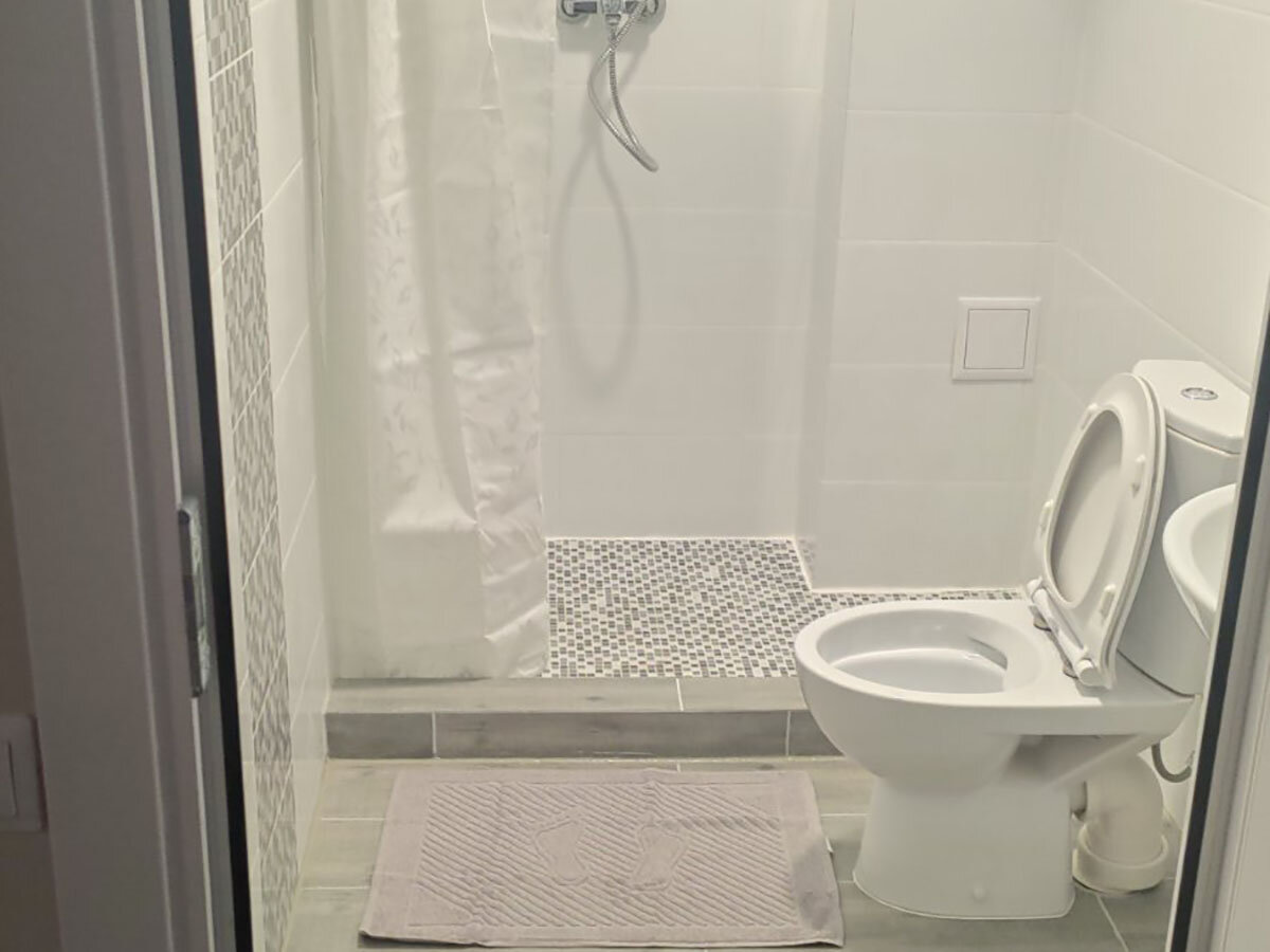 «Апартамент» состоит из 2 спален, кухни и ванной с отдельными входами с бол. летней площадки. 55м2. Есть: Wi-Fi, ТВ, кондиционеры, холодильник, микроволновка, газ. панель, чайник, посуда. В санузле отдельная комната с душем, 2 кабинки с унитазом.