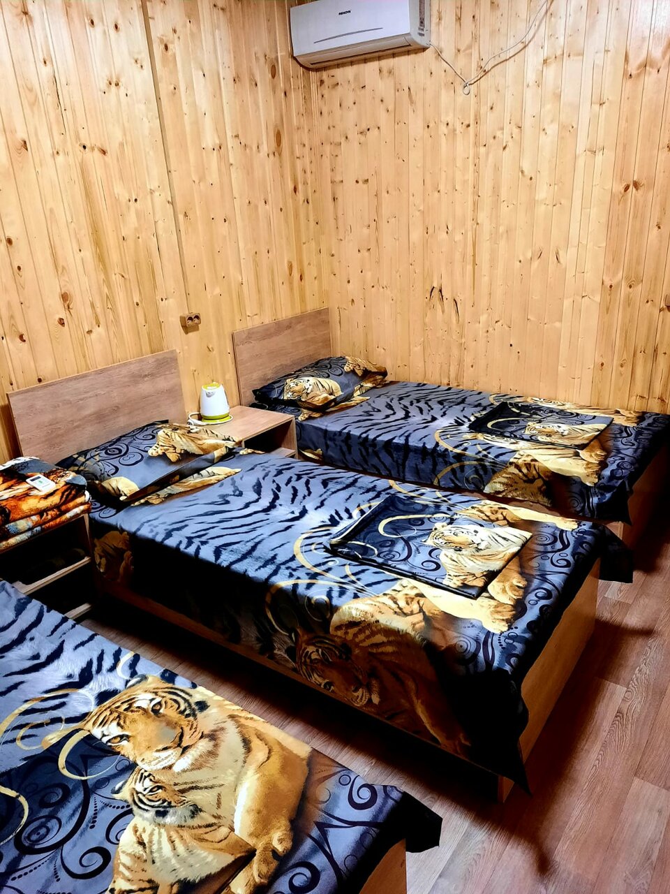 Позвонили за два часа, бронь 500₽. Хозяин приветливо встретил. Номер на 4 гостя, душевая и санузел, кондиционер. На кроватях чистое постельное белье, полотенце. Есть стол и стулья, телевизор, чайник и кружки. В душе Теплая вода с хорошим напором, фен. Рекомендую!