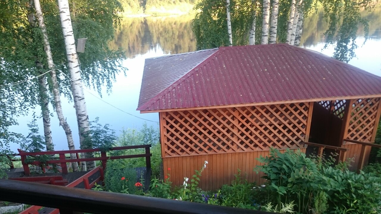 Очень уютная гостиница на самом берегу реки, есть беседка, мангал. В гостинице обустроенная кухня, душевая и сауна. Очень красивый вид на реку
