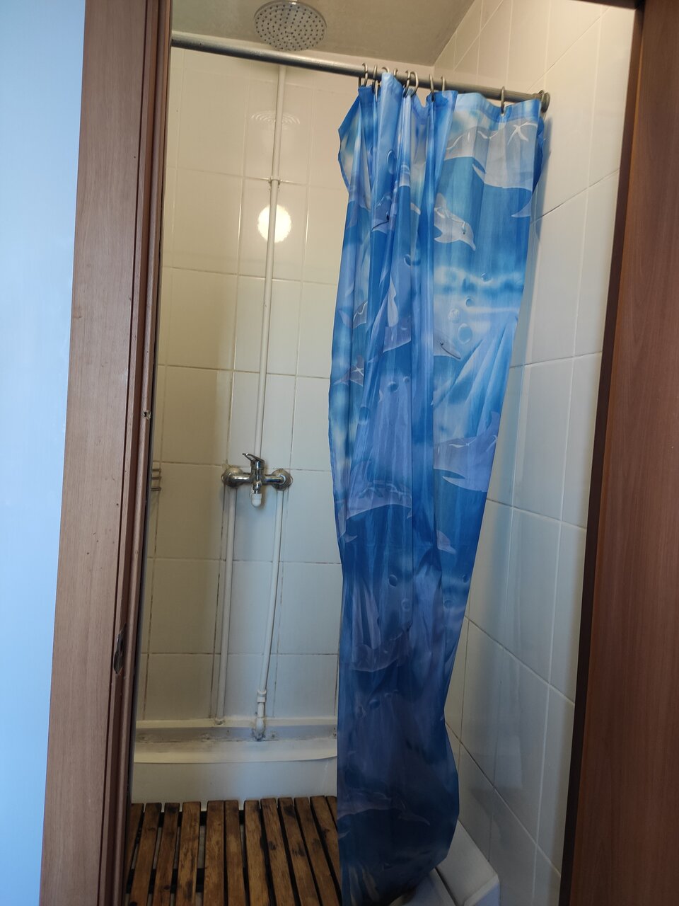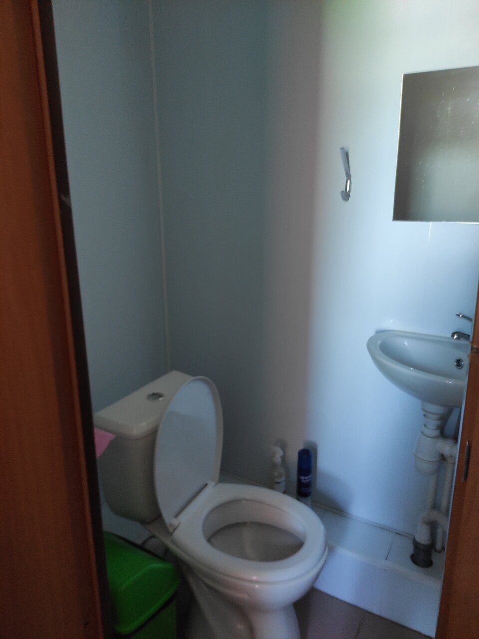 Общий душ , общий туалет, в остальном всё не плохо, рядом с озером , присутствует запах стоячего водоёма