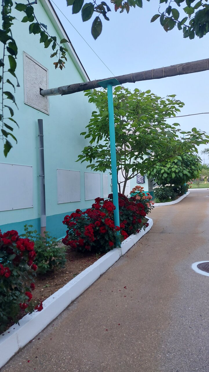 - Номера с холодильником и удобствами.; Тихая, зелёная территория.; Закрытая территория, безопасность для детей.; Много роз и плодовых деревьев.; Большие номера.