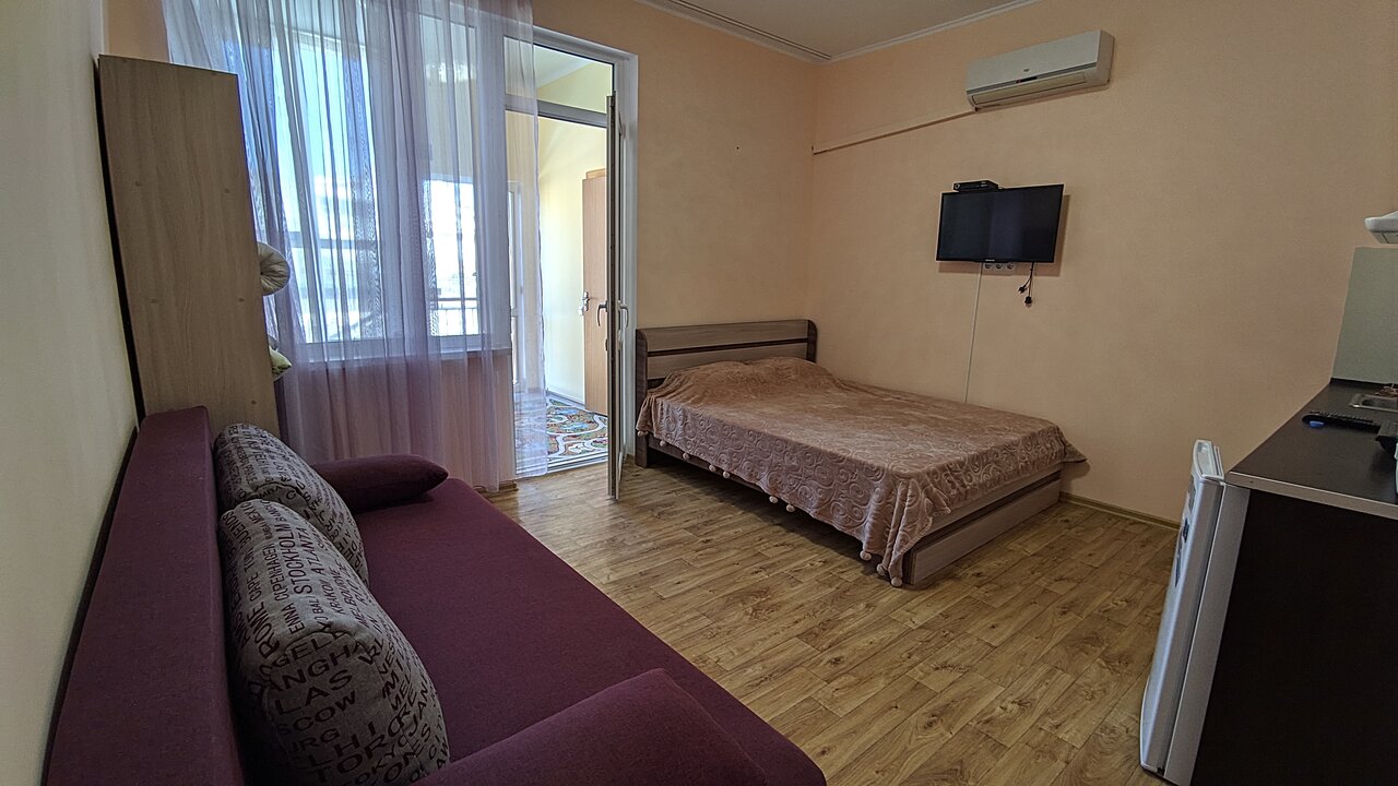 Гостевой дом ОМЕГА одни плюсы . Все супер. До пляжа 100м пляж супер. Вокруг все в кафешках. Цены очень демократичные. Чебурек 100р. Большой выбор. Номера чистые и уютные. Постельное новое. В номере кухня. Свой дворик, беседка, мангальная зона,гамак. Всегда все прибрано. Хорошо душевно отдохнули. Спасибо радушным хозяевам.