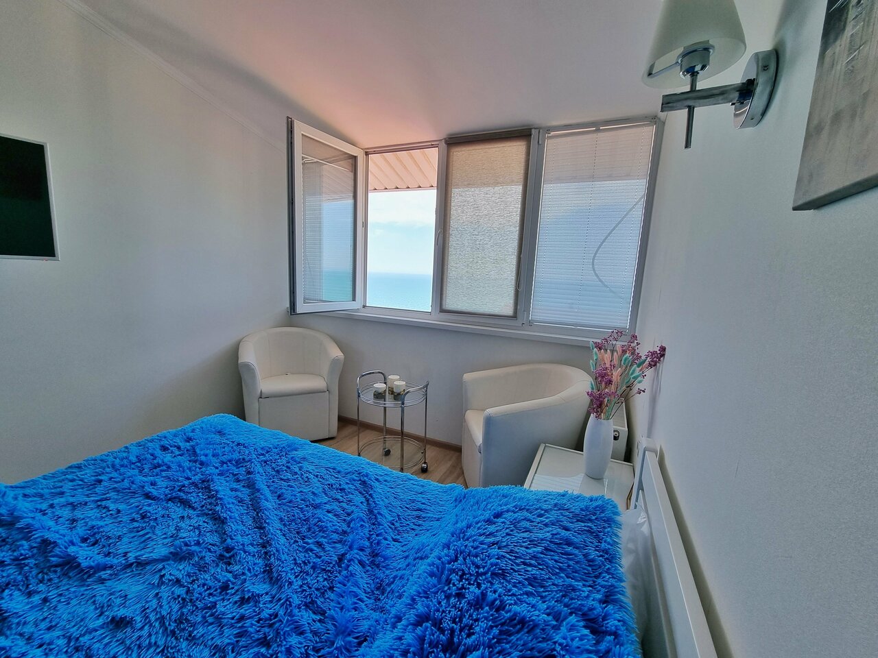 Не первый год снимаем апартаменты у Марии. В этом году повезло заселиться в двухуровневые с шикарным видом на море. В апартаментах всё предусмотрено до мелочей, есть всё необходимое. Чисто уютно. Очень удобные кровати и подушки. А какие закаты… До моря две минуты. Чистый, оборудованный пляж. Рынок, магазины — всё рядом.