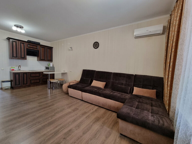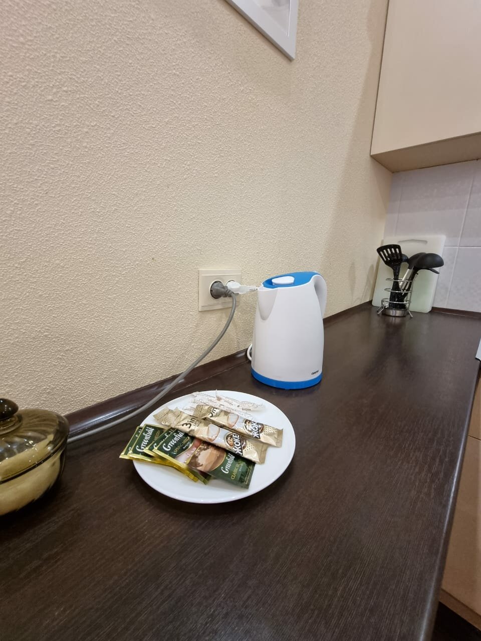 - Полная оснащённость апартаментов (вся необходимая техника, посуда, бытовая химия).