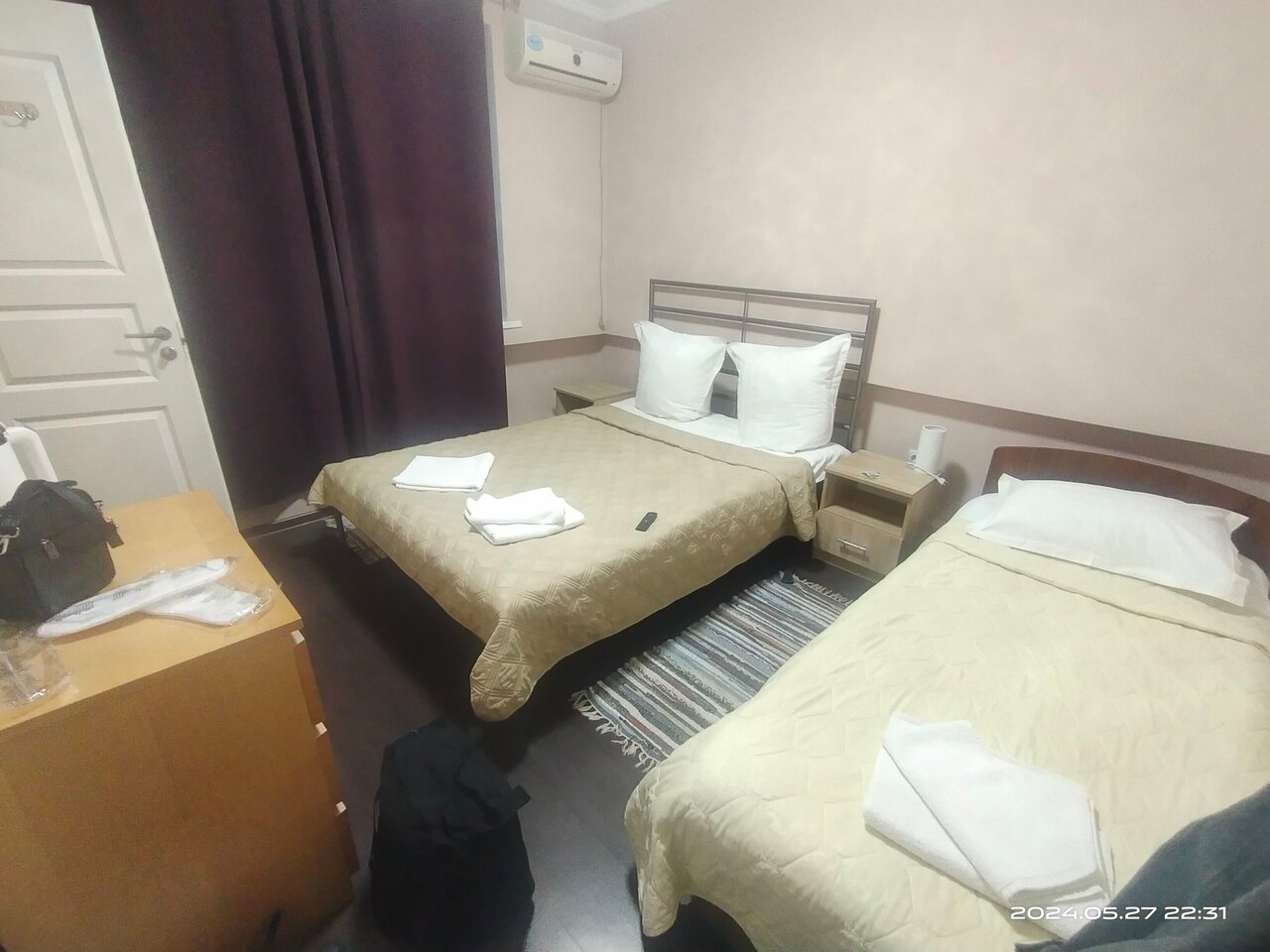 Останавливались с 27 на 28 мая с мужем и ребёнком, остались очень довольны. Всё чистое. Каждому комплект белоснежных полотенец, шампунь, гель для душа, мыло, одноразовые тапочки. В номере телевизор с операционной системой Яндекса, чайник и светильник. В отеле wi-fi, в месте общего пользования холодильник, микроволновка, кофеварка. Кровати удобные, постельное бельё чистейшее, подушки упругие, в меру мягкие. В общем всё необходимое чтобы отдохнуть с дороги имеется. Рекомендуем.