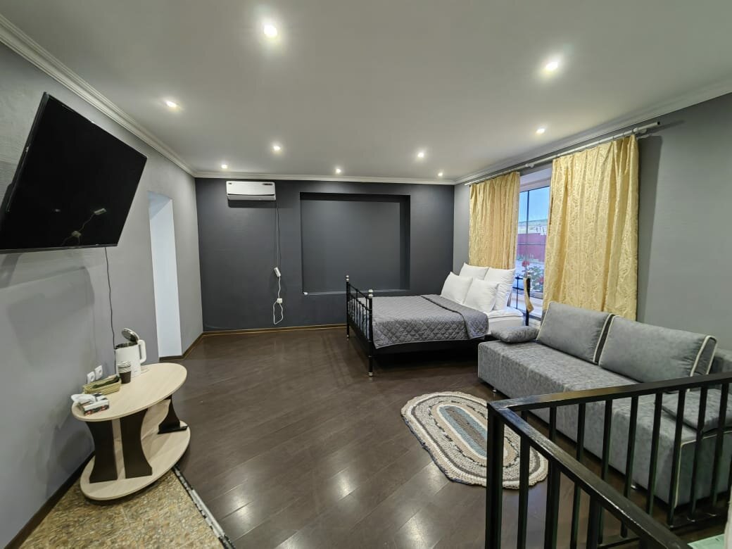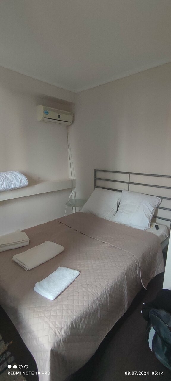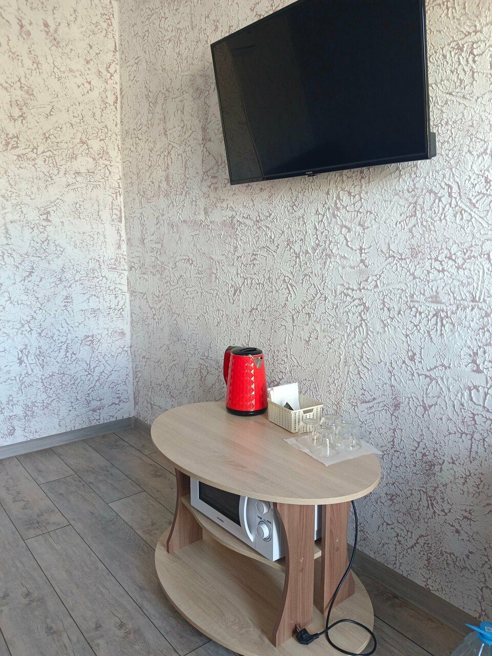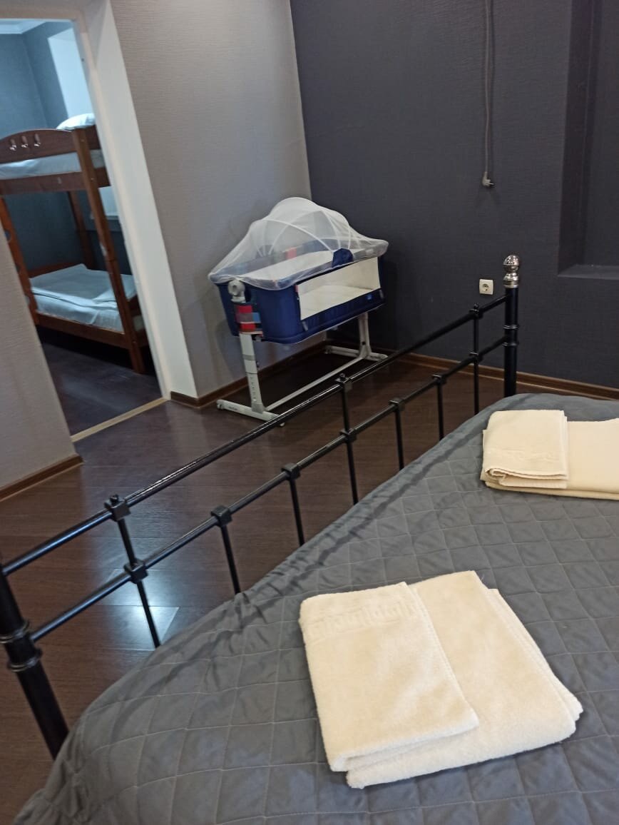 Возвращались с моря, по дороге забронировали 4-местный номер. Для ночлега. Все шикарно. Все чистое, новенькое, современное. Матрас на кровати классный, диван новый. Душ чистый. Есть и чайник, и холодильник, и микроволновка. Спасибо за прием. Будем рекомендовать друзьям.