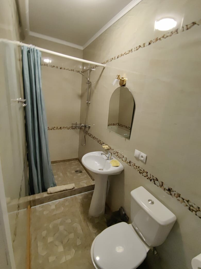 Гостиница новая, не было интернета вай фай, холодильника и кондиционера. Питьевая вода должна быть своя. Вежливый хозяин, заселились быстро.
