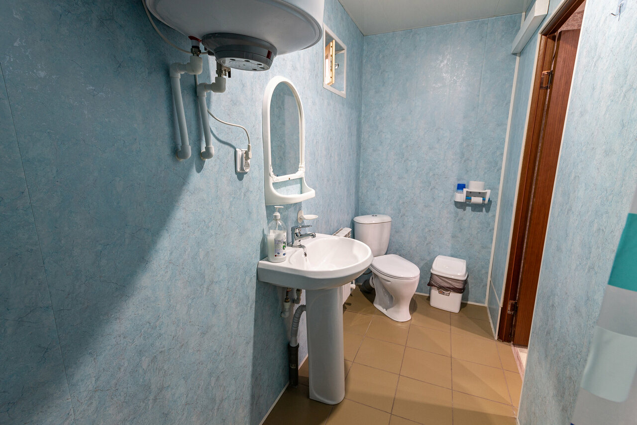 Номер чистый. Тихо и уютно. Из минусов: нет микроволновки и холодильника (хотя бы на общей кухне), бойлер очень долго нагревает воду, поэтому хозяин должен был заранее включить его. Пришлось мыть детей холодной водой.