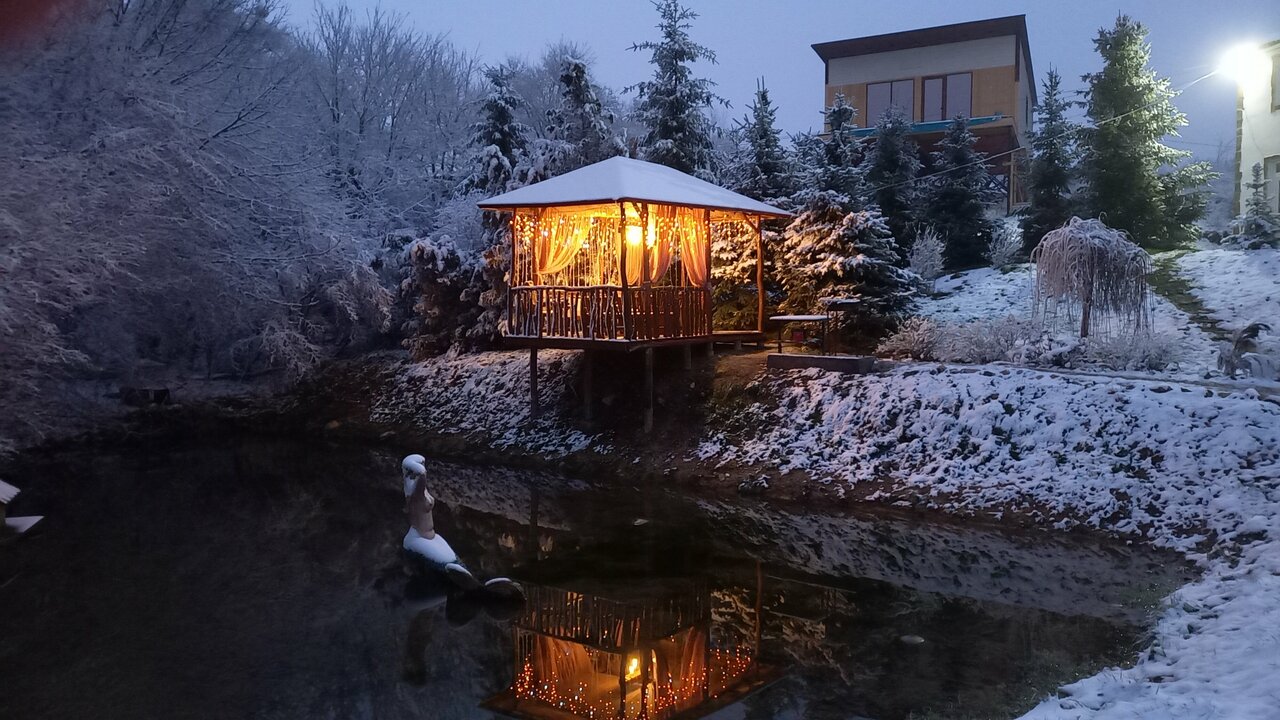 Очень милое место с красивыми видами! Банька крутая и бассейн с проточной водой порадовал! Была в конце декабря,все же решилась после баньки прыгнуть в бассейн и не пожалела!!! Остались очень хорошие воспоминания!!!)))Очень советую!!!)))
