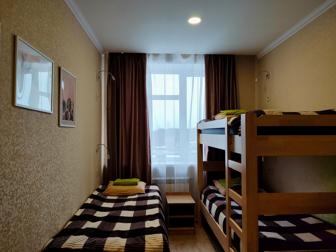 Мы встретили юбилей жены в этой гостинице Юбилейная. Взяли номер на четверых с двухярусными кроватями. Не пожалели, что душ и два туалета через коридор, соседи не беспокоили, мы их не видели. Персонал чётко все делает, профессионально. Оформляют как в приличной гостинице убирают номера тщательно, другие номера смотрел и был доволен, но мы нереально сэкономили на хостельном с завтраками. Да, завтраки вкусные, но мы докупили еще на 600, перед сном там ужинали с большим удовольствием. Интерьер вполне себе приличный без вычурности, но придраться не к чему. Парковка своя огромнейшая за шлагбаумом, по дороге суперудобно и выгодно остановиться. Еще раз повторю про еду: она на приличном уровне, выше столовской по адекватной цене. С гигиеной проблем нет. Дублирую отзыв на столовую, перепутал с гостиницей))