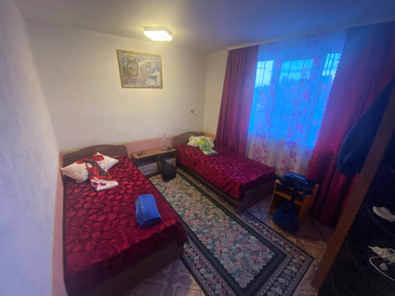 Редкая по отвратительно у сервису гостиница. Александр, хозяин, с виду приличный мужик, но номера полный отстой. Телевизоры работают через пень-колоду, интернет — только в столовой на первом этаже. Номера убирают, когда захотят. Но самое интересное, это кафе. Поесть там нельзя, только для корпоротивов. Зато когда кто-то празднует в этом кафе — вы будете слушать их музыку, фейерверки под окнами и пьяные крики до утра. Так что кто любит послушать чужой галдёж и пьяную ругонь, то вам сюда. Хотя другой гостиницы тут всё равно нет, поэтому куда вы денетесь! Чем хозяин и его жена и пользуется. Сами-то они живут в другом доме.