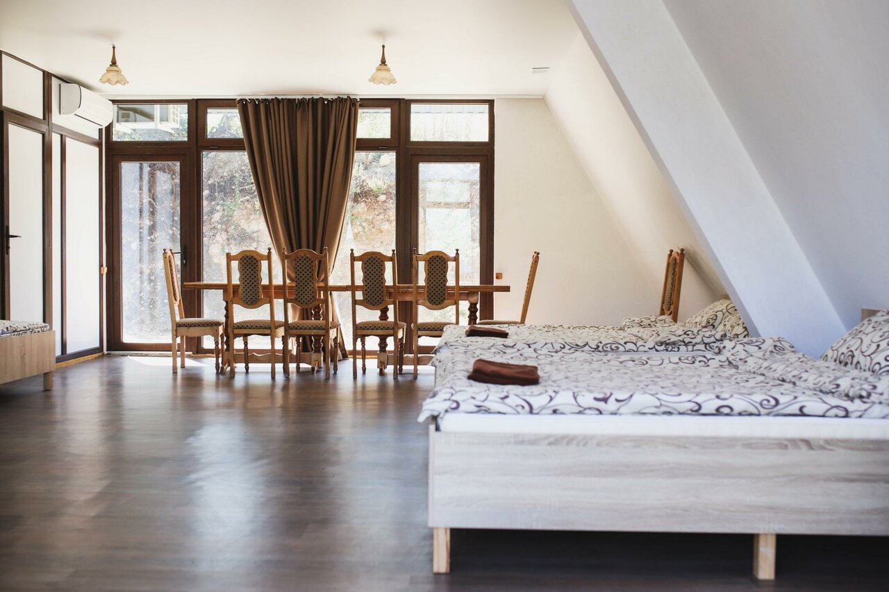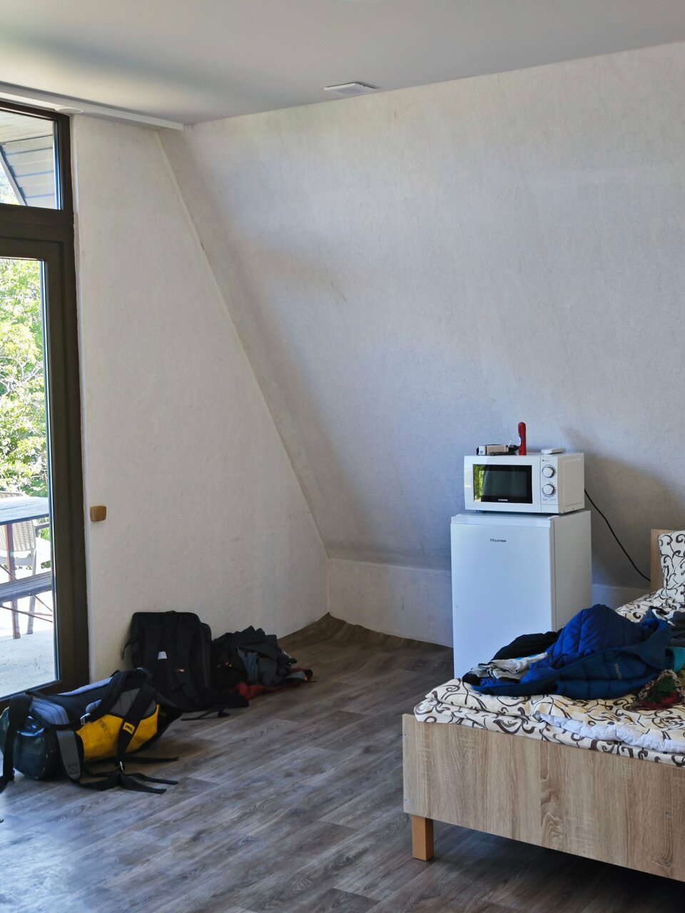 В номерах грязь, полы явно не мылись очень давно, на полу стриженные ногти, администратор предложила другой номер, без ногтейно полы тоже все в мусоре. Остались так как темнело, и не было времени искать жилье. Свет тусклый, в туалете света вообще нет. Постельное дешевое, матрасы грязные. Ремонт какой-то то на скорую руку и эконом вариант. Вернутся желания нет, это явно не стоит 6000.