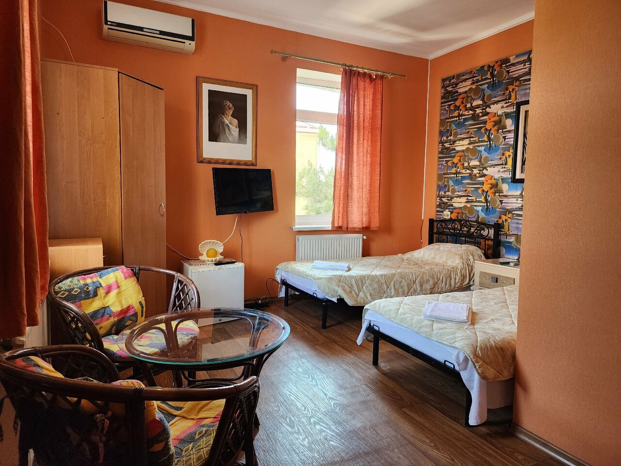 - Яркий цвет стен в некоторых номерах (на любителя).