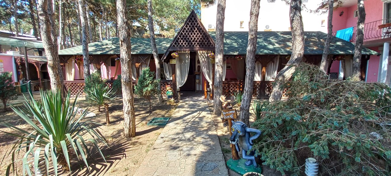Отличное расположение-50 м от моря, удобные комфортабельные номера, бесплатная парковка для постояльцев, бассейн (в плохую погоду отличная альтернатива морю), своя столовая (где всегда все свежее, вкусно и большие порции). Возможна оплата только за проживание без питания. Отличная дворовая территория, где в тени сосен расположилось уютное кафе, в котором можно насладиться тишиной, прохладительными напитками и заказать блюда на мангале. Отдыхаем с дочкой не первый год-всегда хочется вернуться сюда снова и снова…