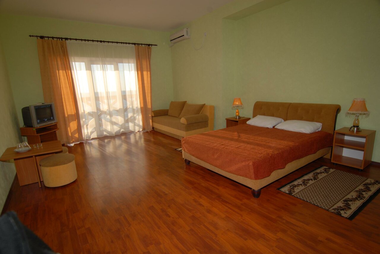 В этой гостинице отдыхала несколько лет.Нравится,что находится на берегу моря,на территории есть лежаки,вода и красиво оформленные клумбы. В номерах огромный балкон,где вечером можно наблюдать за закатом солнца и просто посидеть в тихом семейном кругу)