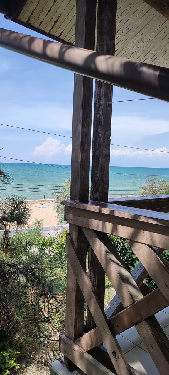 Место замечательное, база отдыха у моря, номера большие, двуспальная кровать, диван огромный, веранда это вообще фантастика-оч большая, стол, стулья, пуфики, сушилка. Пляж песочногалечный. Советую.