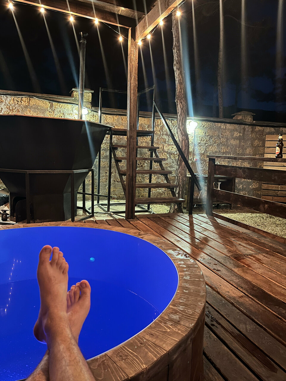 Очень хорошее место для отдыха семьей: тихо, спокойно, море близко. Банный комплекс-отдельное удовольствие, из чана не хотелось выходить. С террасы открывается невероятный вид на сосны и море, особенно красиво на закате. Территория зеленая, есть где пожарить шашлыки