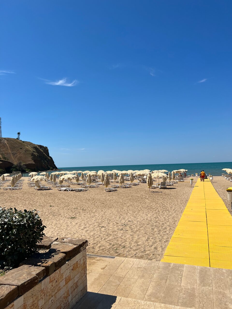 Пляж оборудован, чистый. Несколько чистых бассейнов. Огромная территория со своим озером. По территории от номеров до пляжа курсирует паровозик. Каждый день расписан увлекательной анимацией для взрослых и детей любого возраста. Группа аниматоров делает каждый день вашего отдыха веселым, занимательным и не скучным. Разнообразие блюд в Ресторане приятно удивляет! Немерянное количество мороженого, молочного коктейля, поп-корна, кваса, пива вас ждут в течении всего дня на островках у бассейна. Рекомендую