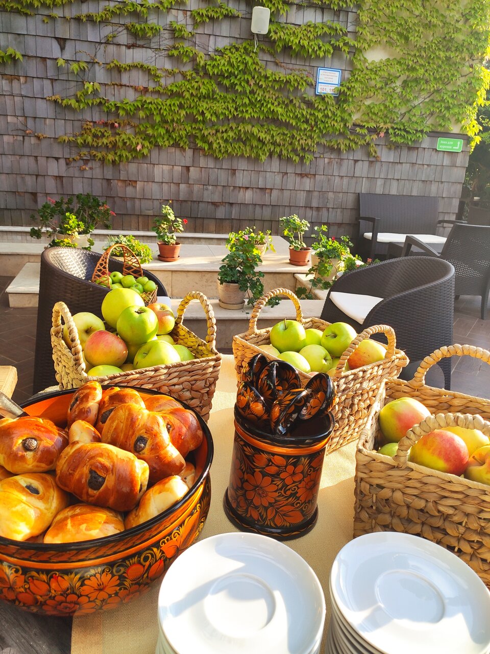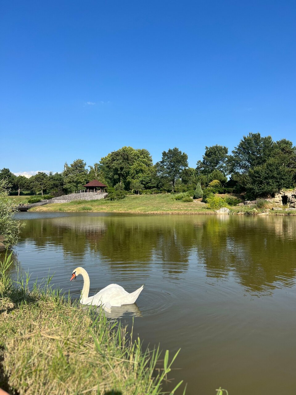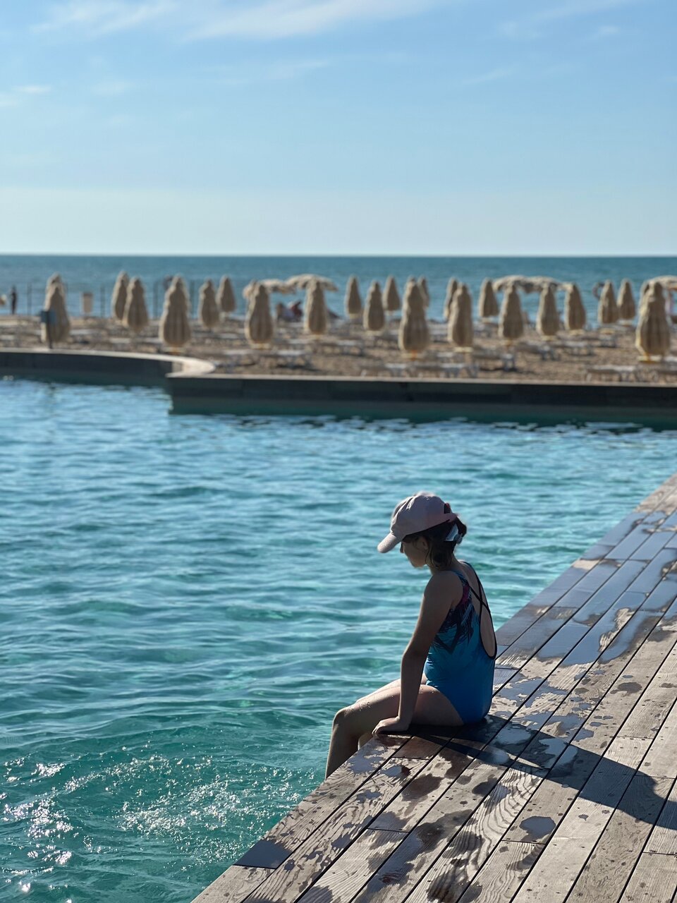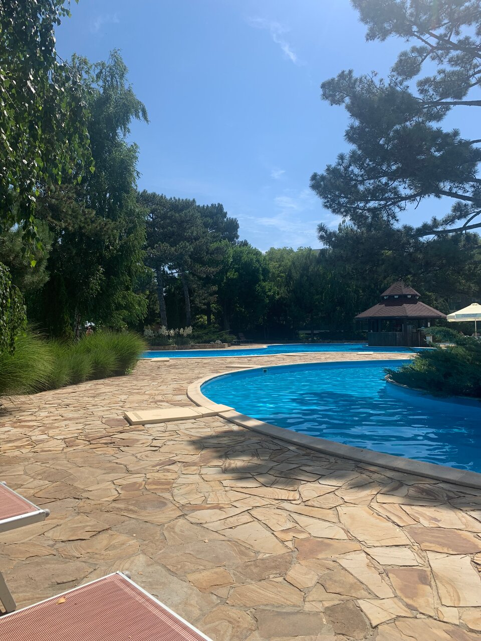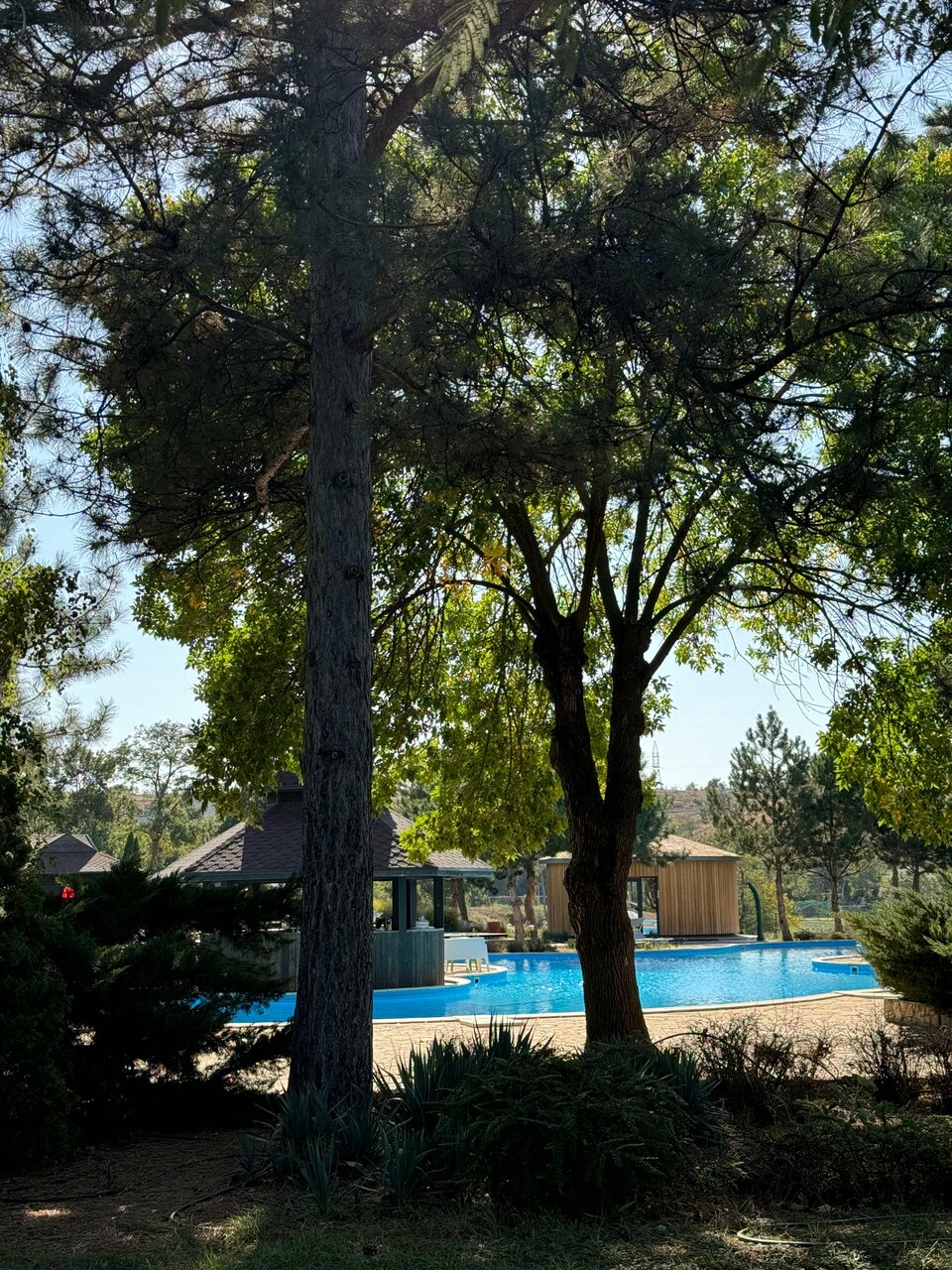 На данный момент лучшее место для отдыха с детьми до 13 лет. Территория ухоженна, можно встретить лебедя или пеликана, когда пойдешь рыбачить. Отличная детская площадка и детская комната, сын 4.5 лет не хотел уезжать. Очень впечатлил малого небольшой хоз двор с козочками,кроликами и индюшками. Взрослым тоже интересно наблюдать за животными. После ужина можно вынести немного овощей и дать им через заборчик. Бассейн реально большой, место хватит всем.