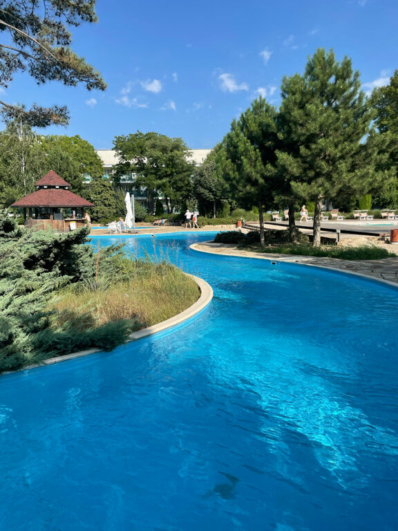 Отдыхали с колегами по работе по программе с 10-00 до 22-00 ( мы до 18-00 были). Мне понравилось. Территория соответствует фото на сайте и даже лучше, везде чисто, растительность потрясающая, все ухоженное. Живые лебеди восхитили. На пляже санатория людей было очень мало, прекрасно отдохнули в спокойной обстановке, поиграли в волейбол на пляже, перекусили в кафешках на пляже и возле бассейна ( в стоимость пребывания входил фастфуд, напитки, в т.ч. пиво, мороженое, поп-корн, свежие овощи, выпечка) Дороговато конечно, (15.07.23 по 3500 с человека) но мы были преглашены, поэтому с удовольствием отдохнули. Рекомендую всем, как взрослым, так и семьям с детьми, т.к. есть детский бассейн и детская площадка.