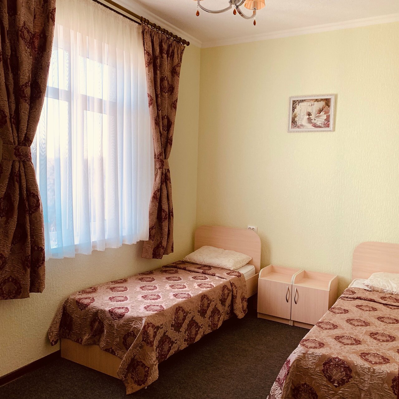 Находимся здесь с детьми уже 6 сутки. Проживание- устраивает полностью, в номере кровать 2-х местная и 1 местная. Телевизор есть, хотя не конда смотреть. Полотенца меняют каждый день. Питание-мы просто обьедаемся, всегда выпечка, порции большие, вообще еще не разу даже чебурека не купили на пляже)