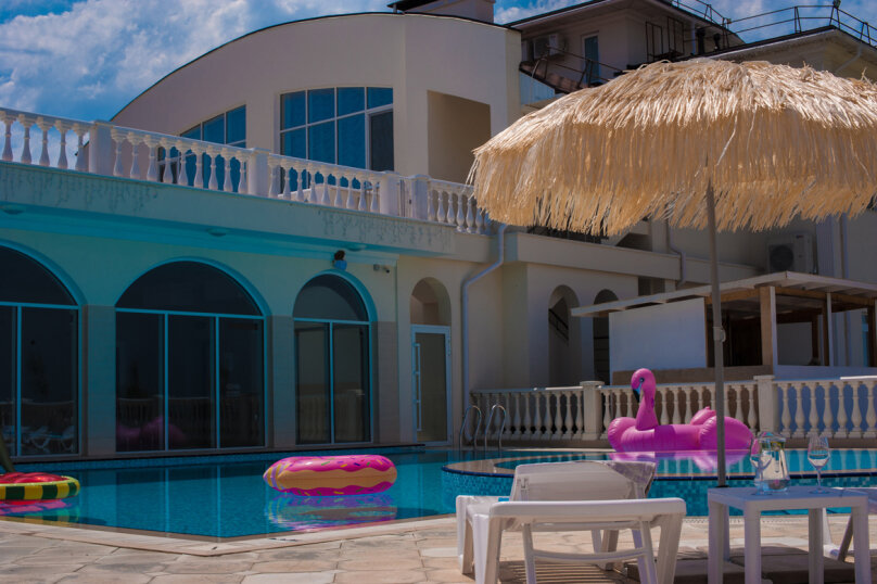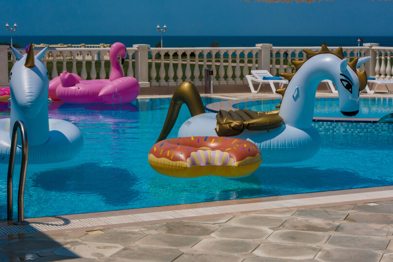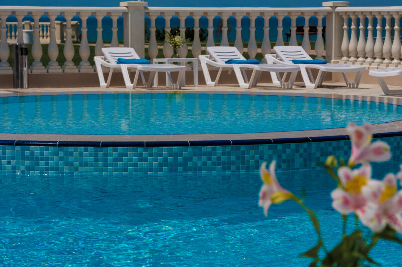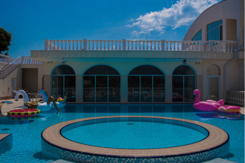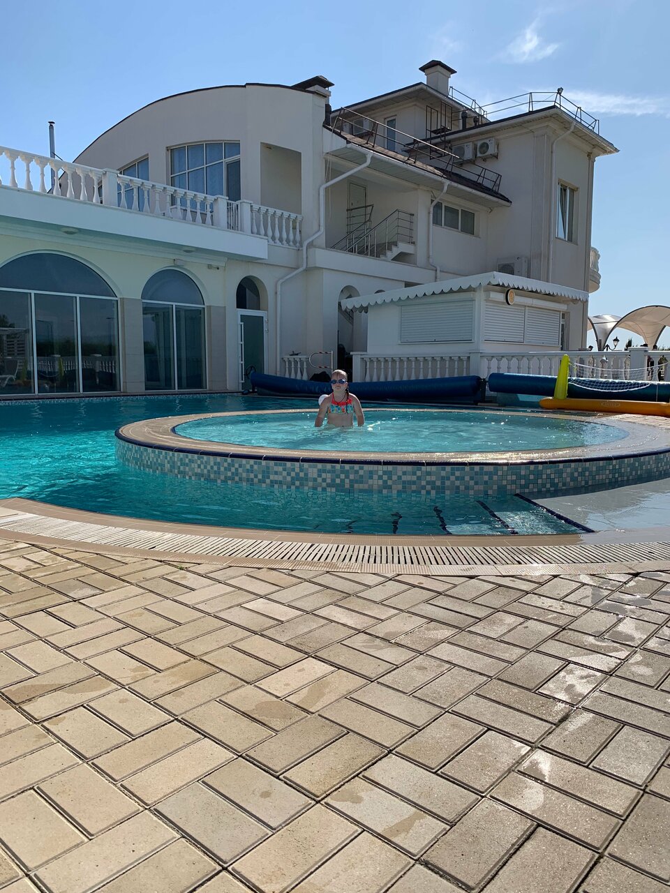 Плюсы: Чистые уютные номера. Хороший бассейн. Лежаки в теневой зоне. Приятный персонал на ресепшене и охрана Парковки. Анимация для детей Минусы: необорудованный пляж. Баснословны цены в ресторане для такого примитивного меню. На завтрак отвратительный апельсиновый сок. Рядом есть ресторан с синими парусами — ужасно кормят. Лучше пройтись до Алма парка там высокая кухня за доступные деньги.