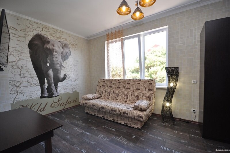 2-комнатный номер 'Африка' (2.01) на вилле «Анжера» выполнен с учетом анималистических мотивов: фотообои, имитирующие элементы шкур диких зверей и изображение животных перенесут Вас на просторы жаркого южного континента.Количество комнат: 2;Расп