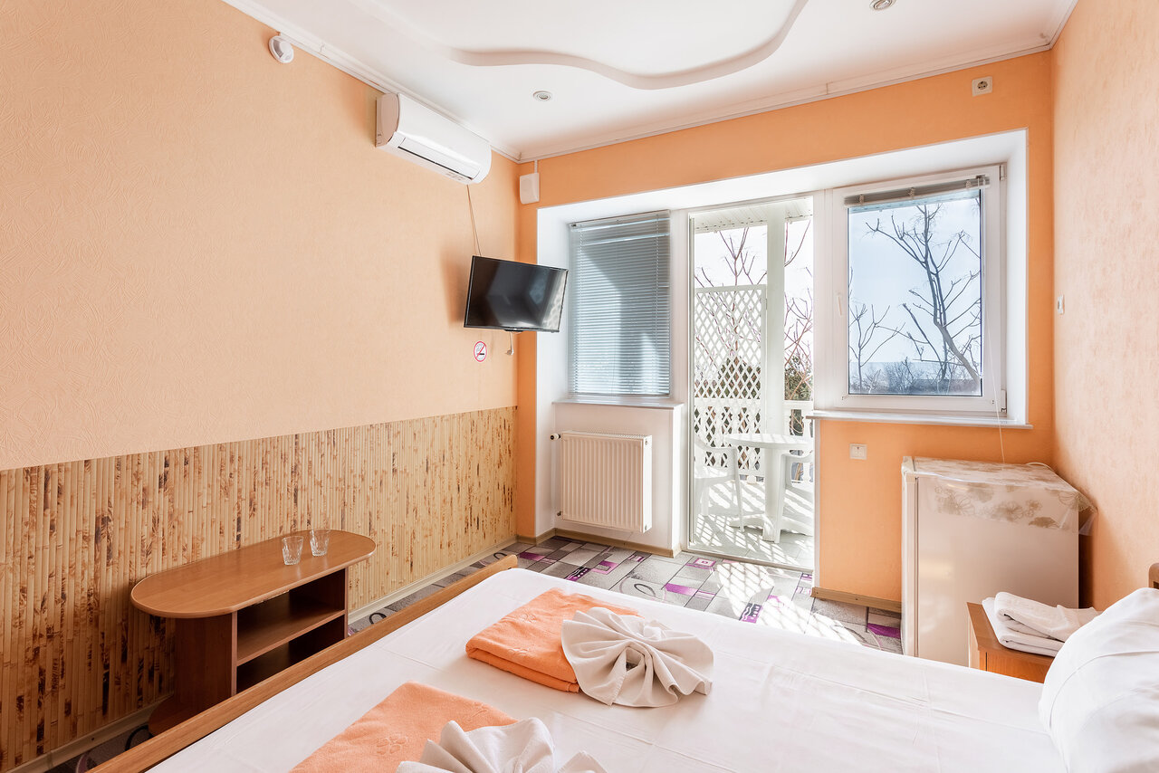 Уютные, недорогие номера, находиться у самого моря 50 метров. Подходит для семейного отдыха!