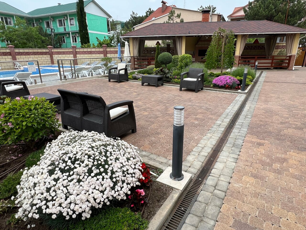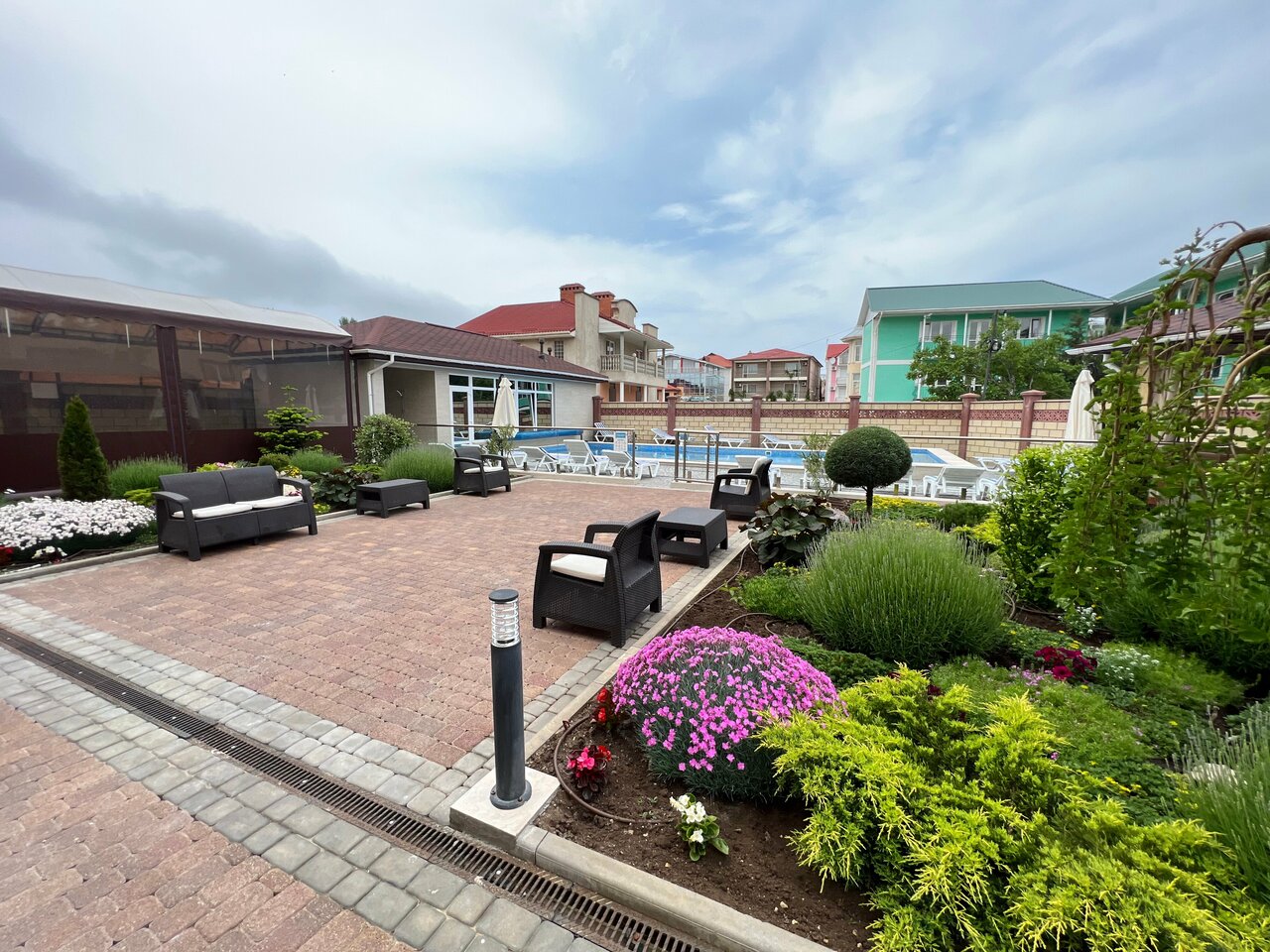 Отличное место. Чисто, уютно, вкусное и разнообразное питание. Море рядом. Пешком минут 5 максимально. Отдельно хочется выделить ландшафтный дизайн. Он потрясающий!
