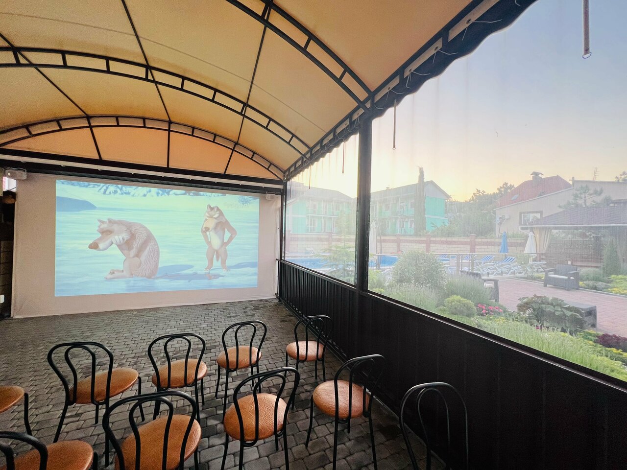 замечательный отель. первый раз здесь ,и поняла, что это лучшее место, в котором можно остаться. бассейн, аниматоры, детская площадка, батут. трех разовое питание в столовой. мы взяли номер люкс, и он просто шикарный. всем советую этот коттедж!