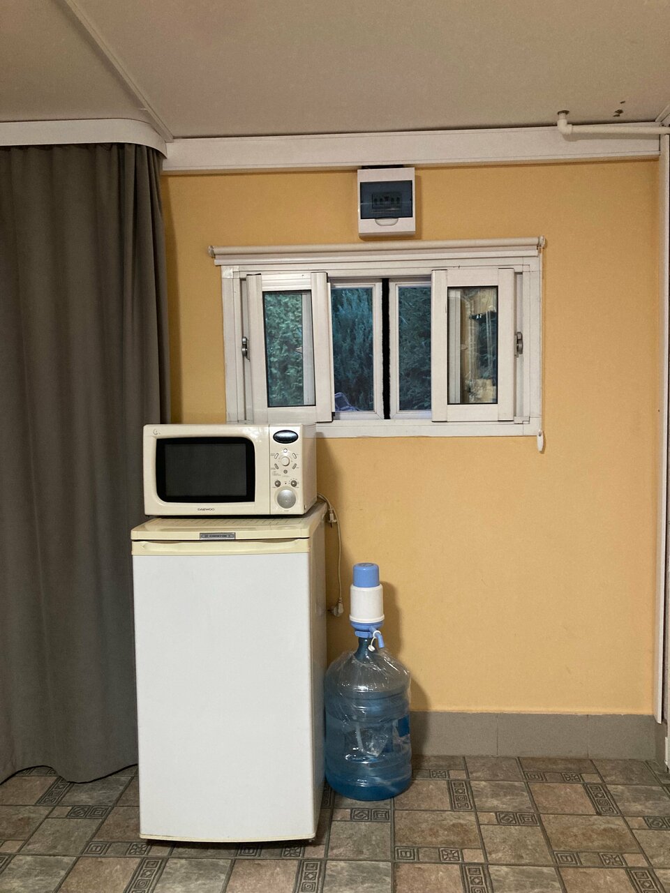 Спасибо хозяйке, приветливая, милая барышня. Уютный номер, душ, туалет в номере. Чистое постельное бельё. Телевизор, кондиционер в номере. Кухня на этаже.