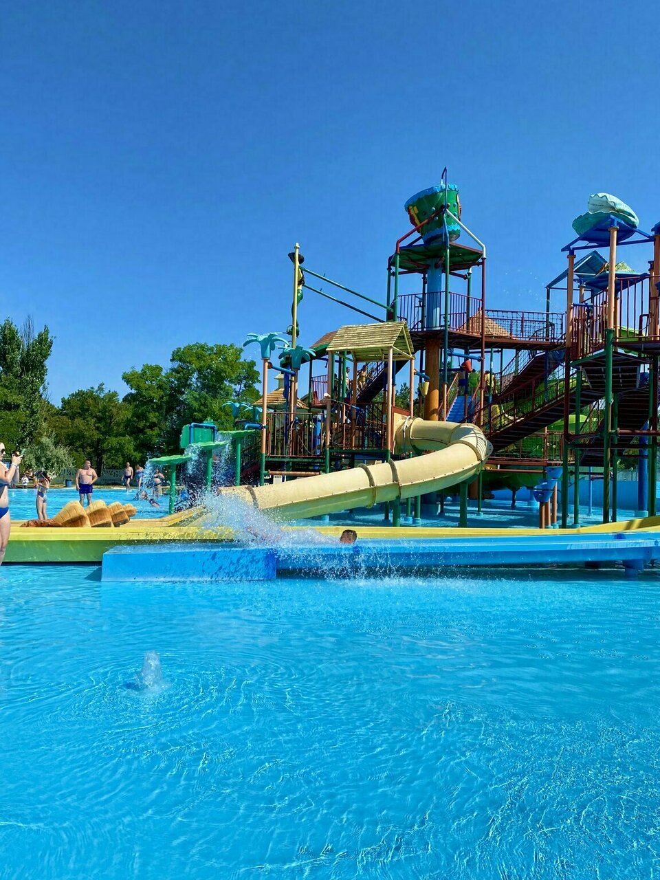 Хорошее место особенно для семей с маленькими детьми . Питание все включено в три смены . Еды много разнообразной, мясо в достатке . Не много скучновато анимация только до 22 х Караоке дискотека . Пиво и вино на улице наливают бесплатно , пиво безалкогольное (( Из плюсов в платном кафе отличные цены барабулька 250 Фри 50 Пиво 90, 120 Есть магазин цены дорогие (( На територии палатки продают футболки полотенца сувениры, купила дочке купальник 1200 норм цена . Из минусов комплекс далеко от города, апеки нет , в мед пункте сказали ничего нет только померили дочке температуру и все . До моря возят на автобусе цена 100 рублей. Отдыхали с 29.08 2023 по 03.09.2023