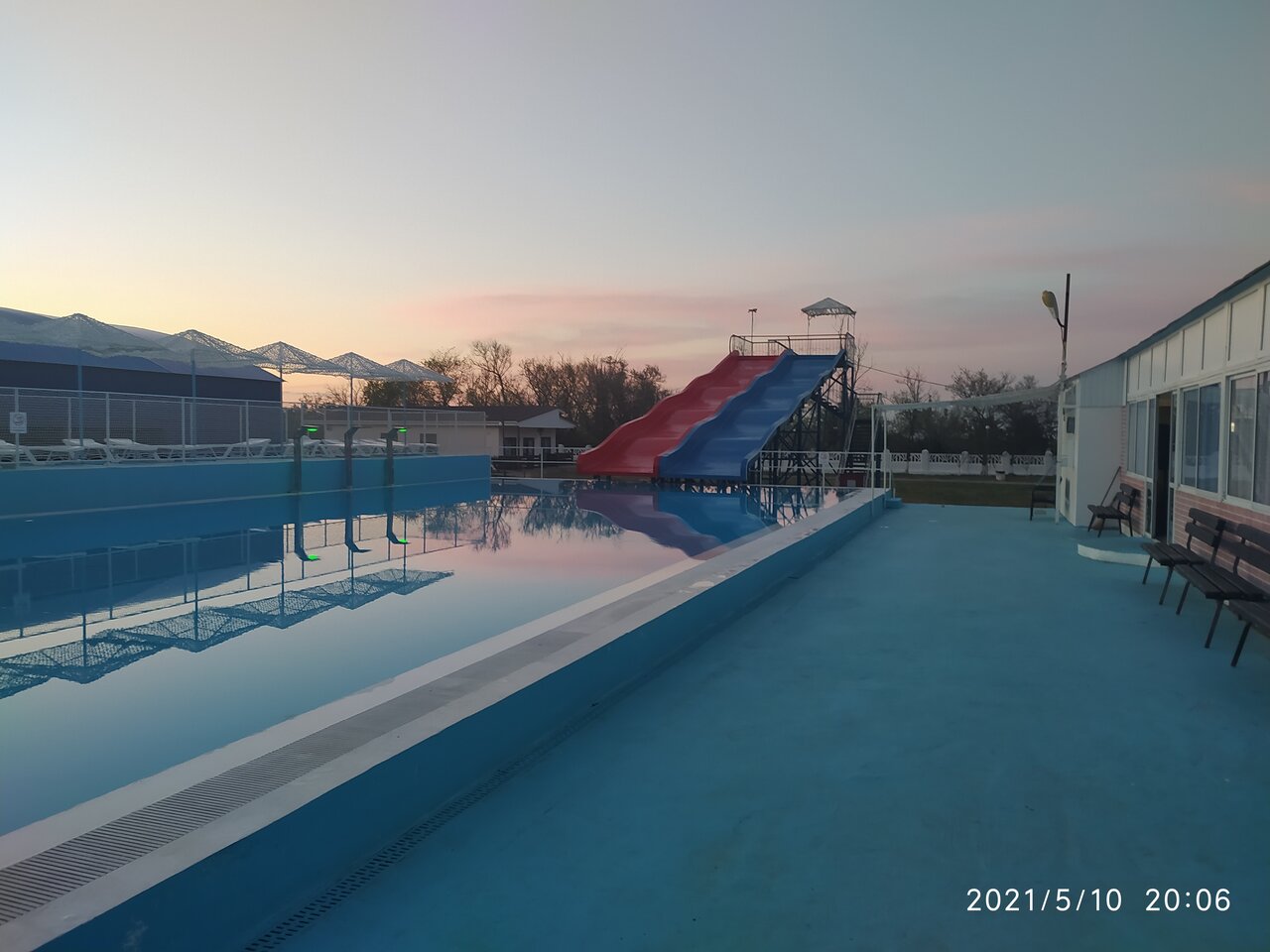 Очень хорошие развлечения для детей, аниматоры, батуты, машинки и многое другое. Вкусная, домашняя еда. Чистые и ухоженные номера, два туалета, холодильник, и микроволновка, короче всё есть. А так же уборщики, которые приходят и убирают в номере. Чистый бассейн где очень приятно плавать. Дети довольны, бесплатным мороженым и лимонадом. Цены в баре приемлимые. Единственное-это дороги, мы еле проехали через эти лужи и песок