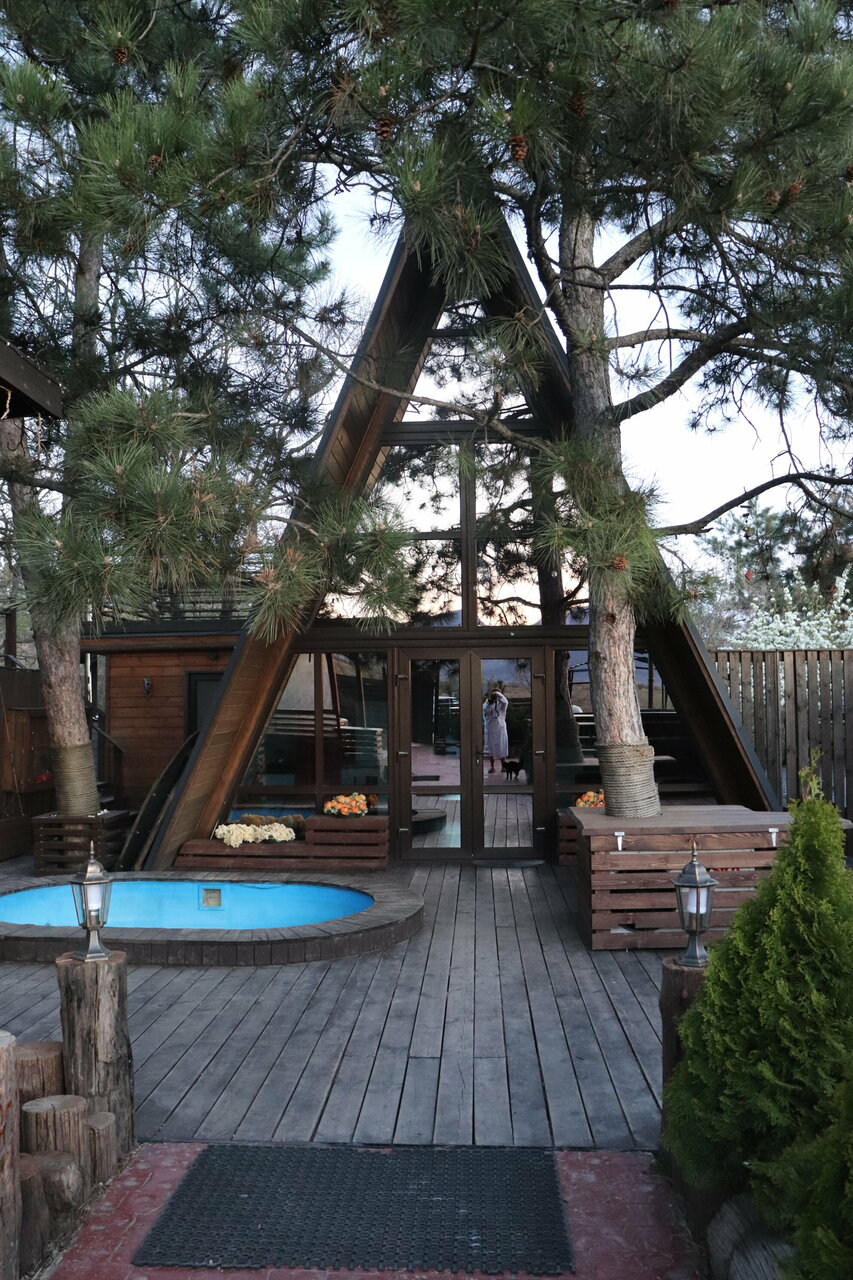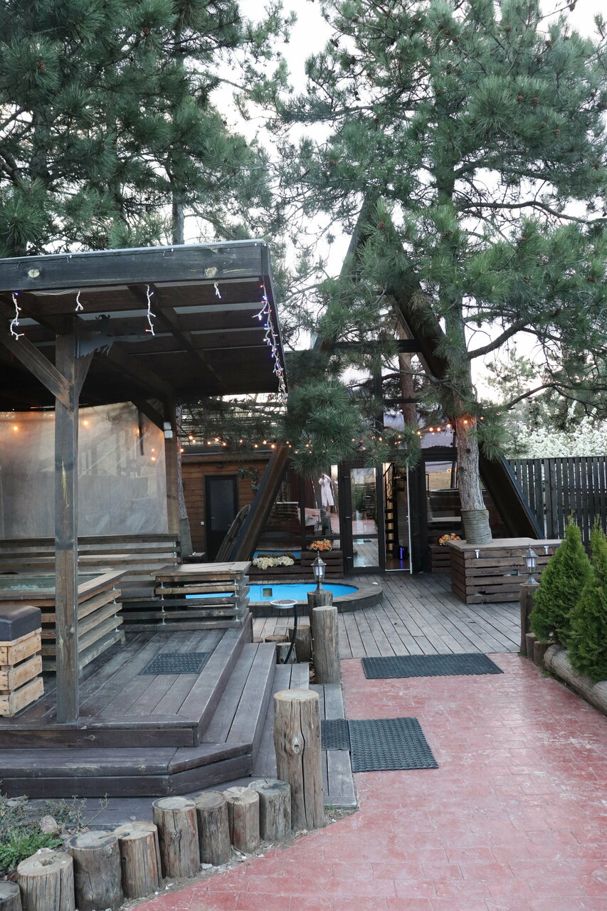 Очень красиво, атмосферно, со вкусом, администраторы всегда помогут. Можно сделать кучу крутых фото для инстаграм. Минусы — пьяные компании рядом. Домики не закрываются на ключ. Заборы слабые и низкие. Если ехать, то только с мужчинами.
