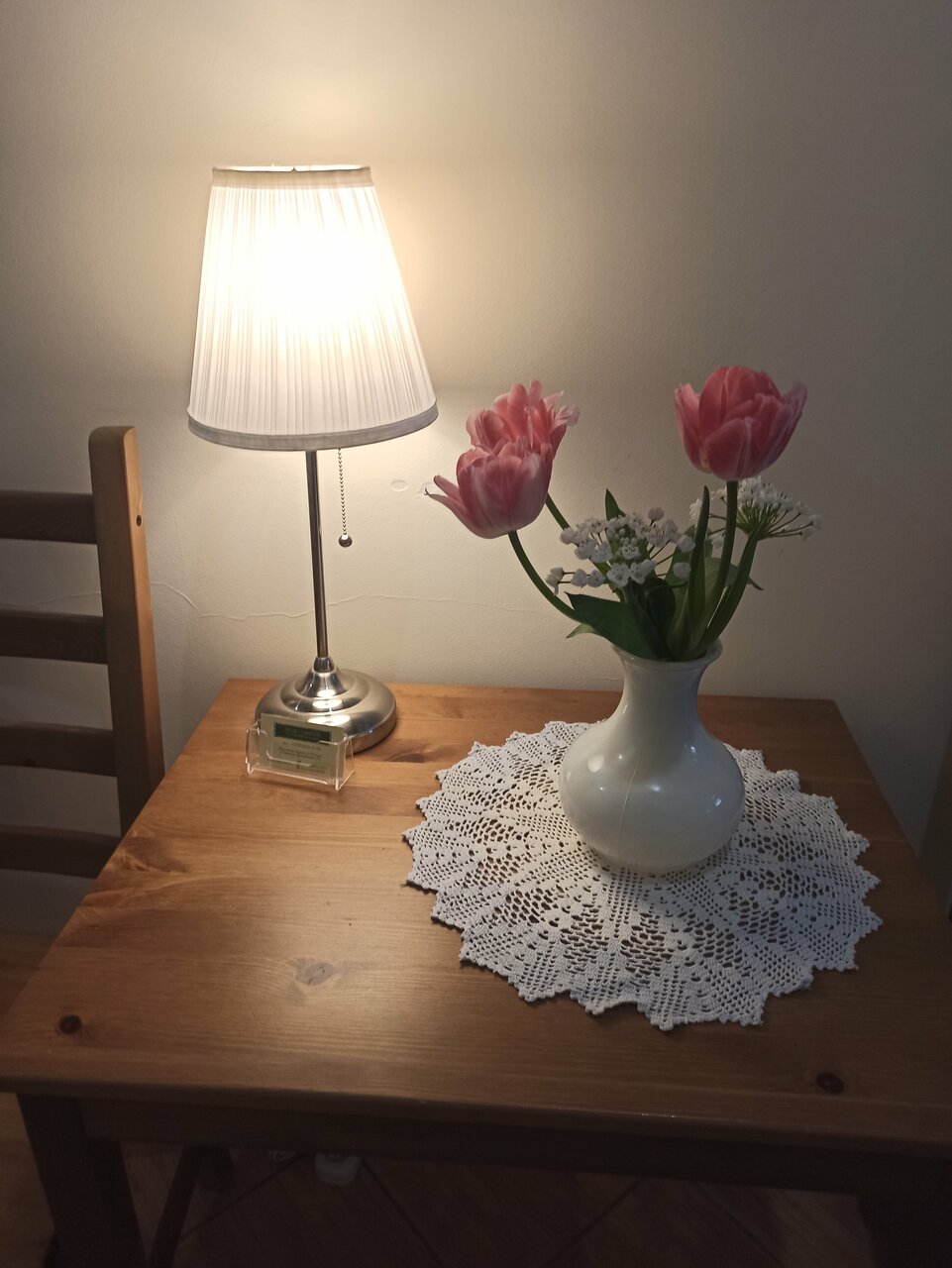 - Внимание к деталям (живые цветы в вазочках).