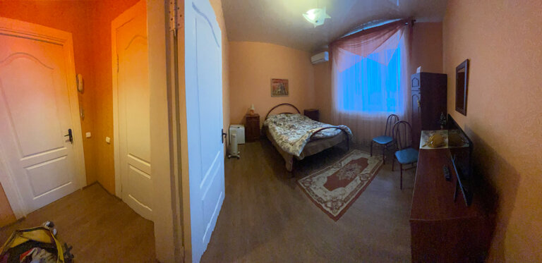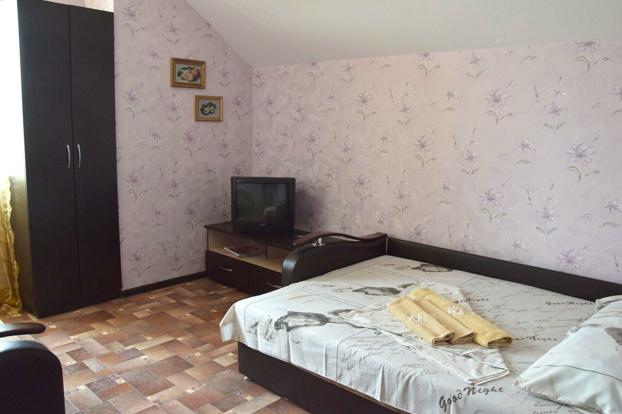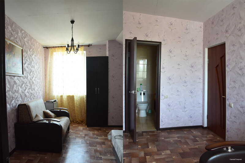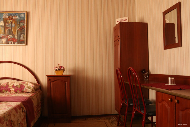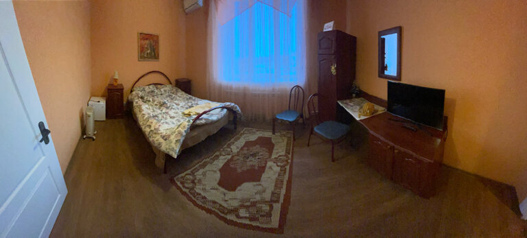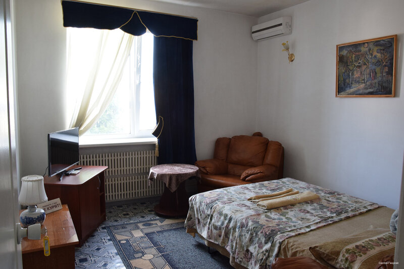 Плюсы: удобное расположение, чисто. Минусы: нет чайника, ужасное белье и полотенца (чистое, но очень старое и синтетика). Номера нужно освежить: обои старые, потолки глянцевые бордовые (сразу наводит на мысль о том кто тут останавливается и чем занимаются). Мы возвращались с Абхазии. К сожалению, не забронировали заранее номер на переночевать. Уже очень устали и обзвонив 100500 гостиниц с хорошей оценкой решились позвонить сюда — тут оказался номер. 2 взрослых и 2 детей, разместили в двухкомнатный номер, стоимость 5000. За эти деньги ожидание совсем другого уровня. Максимум 3500 для него норм. В любом случае спасибо за ночлег, но не мешало бы сделать ремонт, обновить принадлежности, чайник, пакетики чая, шейки и пасту.. тогда бы и не жалко 5000