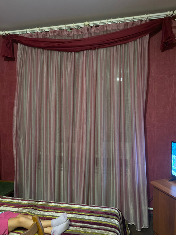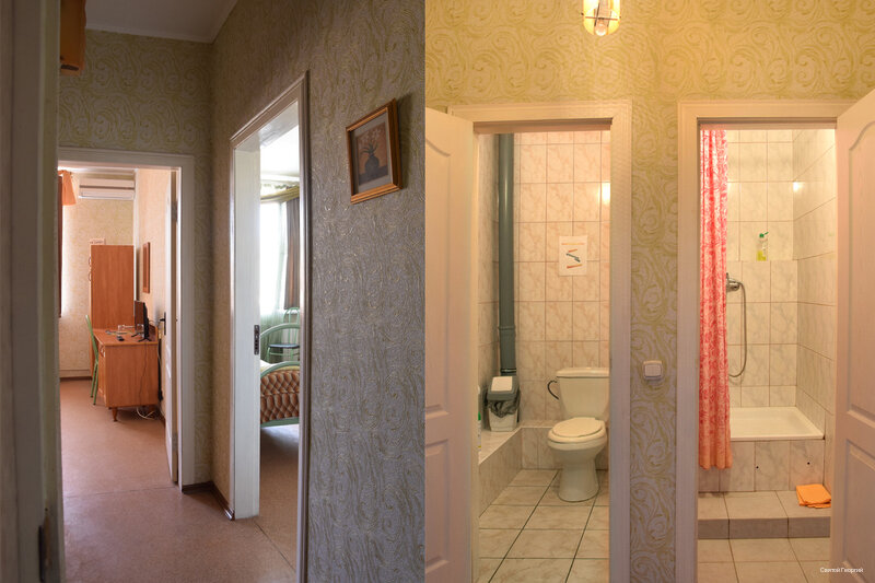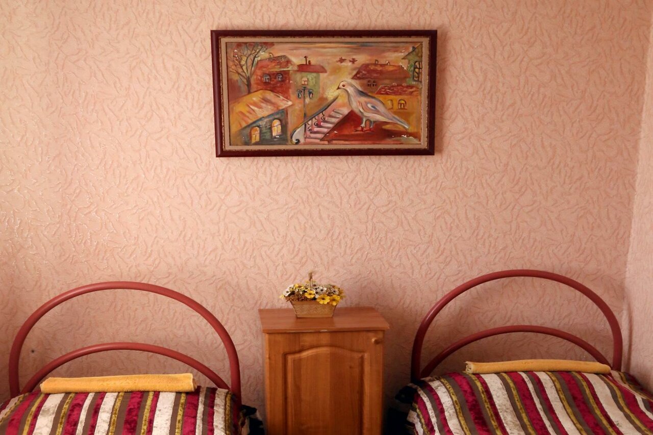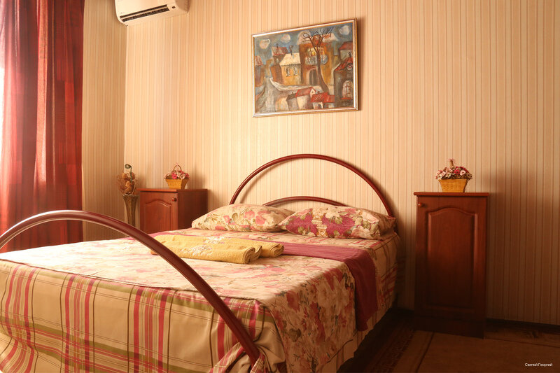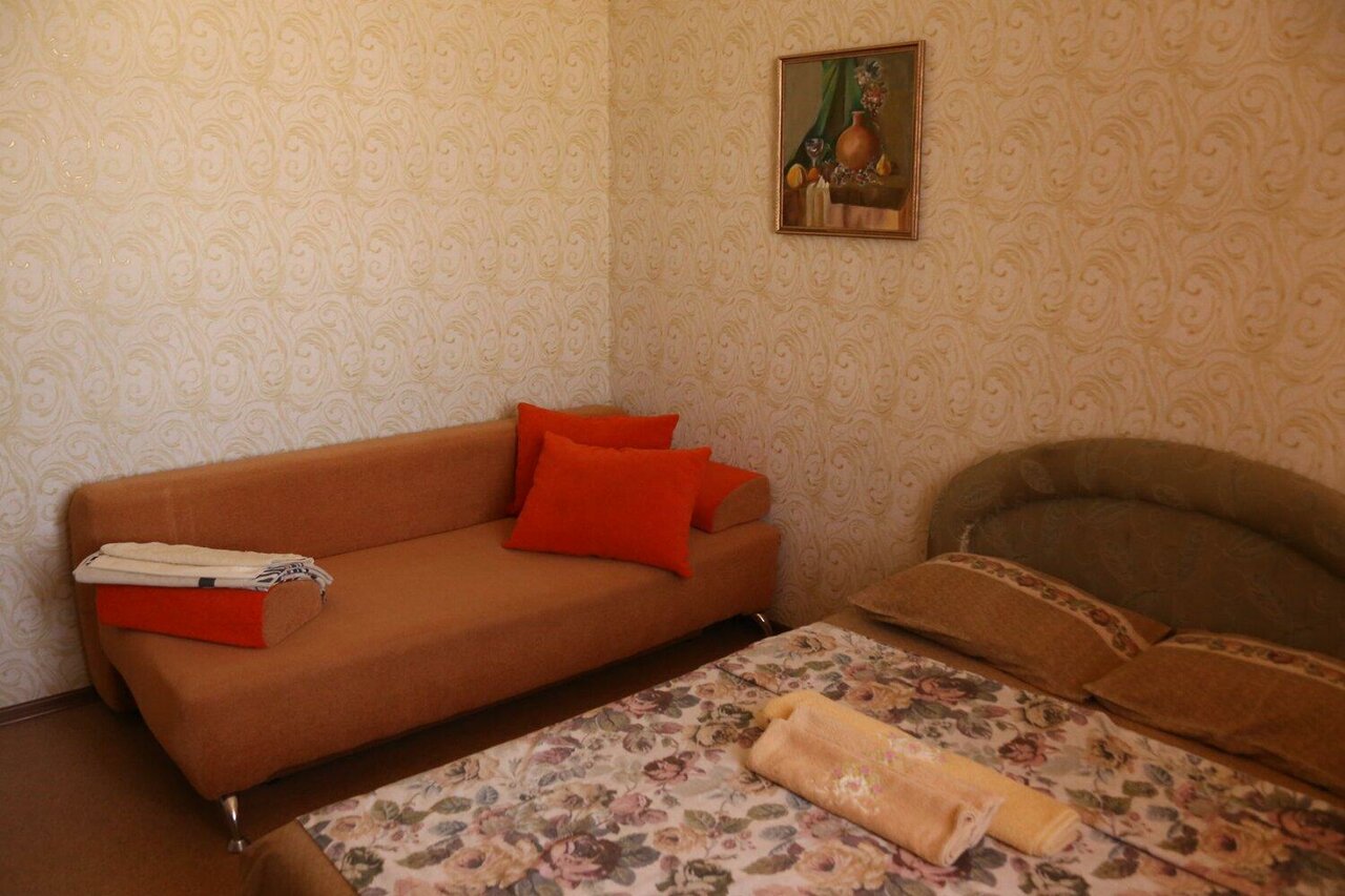 Плюсы: удобное расположение, чисто. Минусы: нет чайника, ужасное белье и полотенца (чистое, но очень старое и синтетика). Номера нужно освежить: обои старые, потолки глянцевые бордовые (сразу наводит на мысль о том кто тут останавливается и чем занимаются). Мы возвращались с Абхазии. К сожалению, не забронировали заранее номер на переночевать. Уже очень устали и обзвонив 100500 гостиниц с хорошей оценкой решились позвонить сюда — тут оказался номер. 2 взрослых и 2 детей, разместили в двухкомнатный номер, стоимость 5000. За эти деньги ожидание совсем другого уровня. Максимум 3500 для него норм. В любом случае спасибо за ночлег, но не мешало бы сделать ремонт, обновить принадлежности, чайник, пакетики чая, шейки и пасту.. тогда бы и не жалко 5000