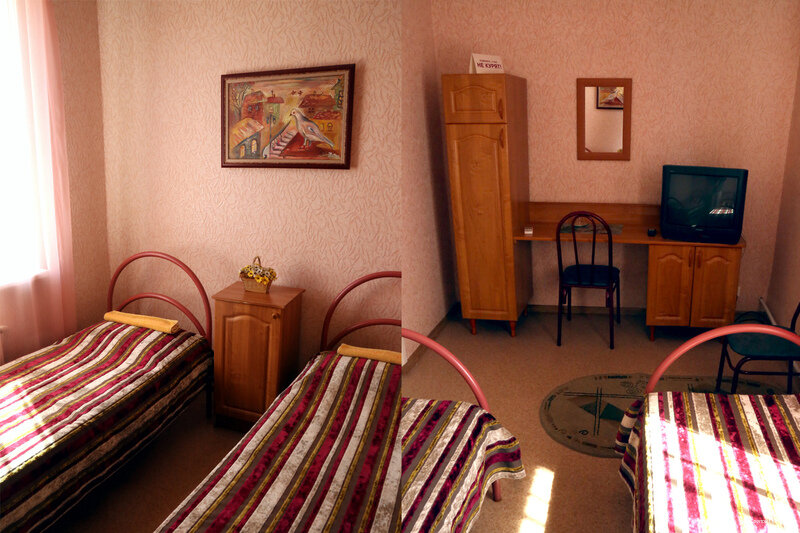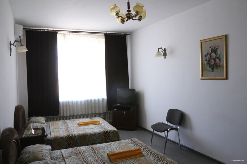 Цены не ниже чем везде, снимали на ночь номер, повезло, что не было соседей, номера только на 2 комнаты, в двухместной комнате темное застиранное белье, полотенца тоже не первой свежести, да еще и банное одно на двоих!!! О технике вообще молчу, телевизор старый, сигнал никакой, Воды питьевой нет, хотите пить- бегите через двор, ‘куда-то туда’.Ну в общем если нет выбора, а остановиться нужно, придется останавливаться…