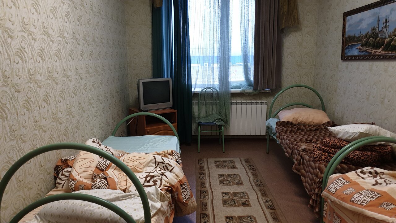 Сносное место, что бы переночевать в дороге. Остановились вчетвером — 2 взрослых и 2 детей. Нам достался номер на пятерых, сделали скидку — заплатили 3 тыс. рублей. В номере было чисто, кондиционер, телевизор, 3 одноместных кровати, одна двуспальная и диван. Туалет и душ. Полотенец было только 2 и то для рук, банных не было совсем. Полотенца плохо пахли, будто не странные. Телевизор работал, горячая вода есть. Было немного прохладно, но под одеялами спать терпимо. Если разобраться с полотенцами и температурой в номерах — твёрдая 4.