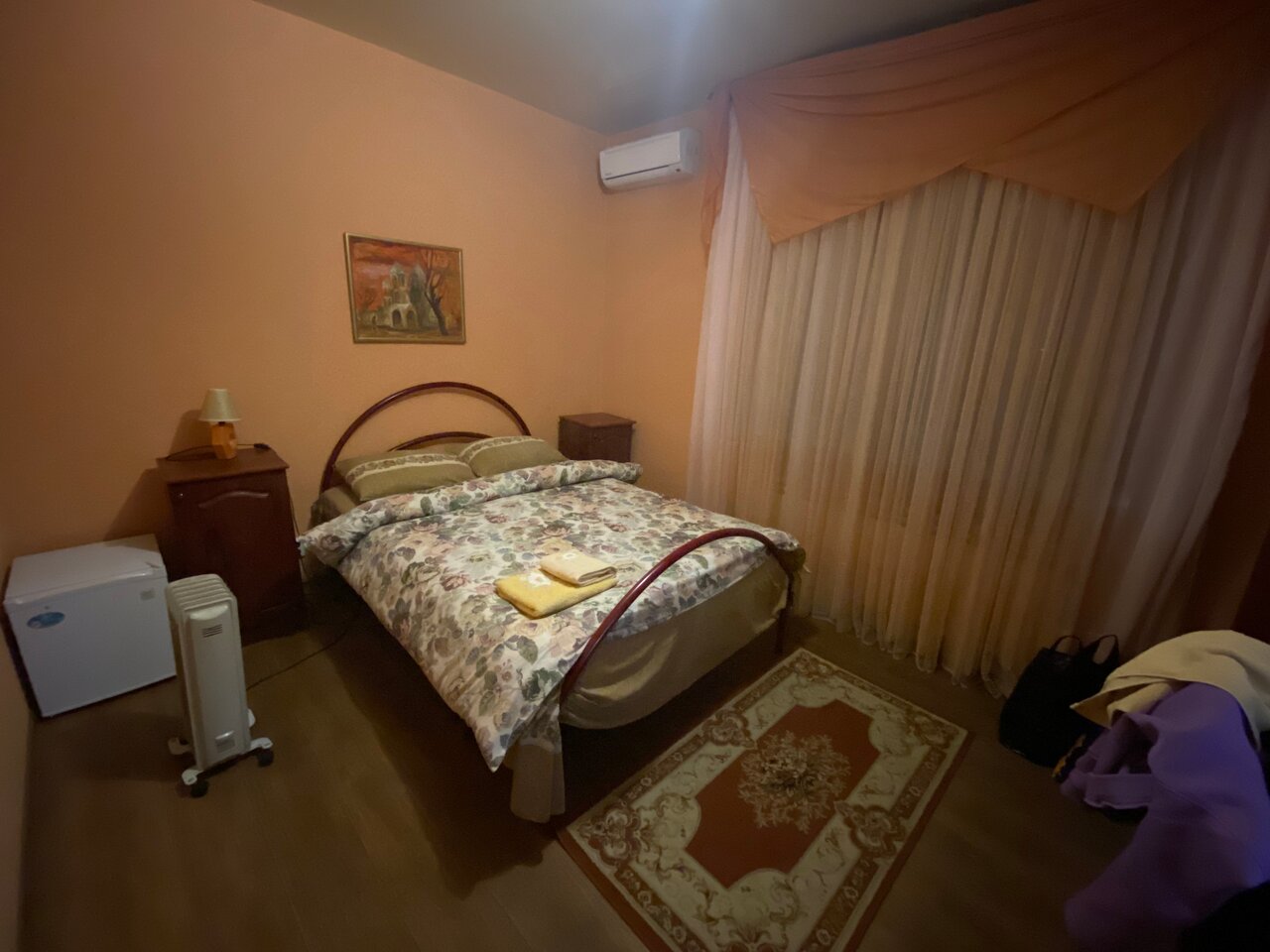 Неожиданно симпатичный и уютный номер. Со стороны дороги кажется, что всё будет плохо, но нет, номер оказался чистым, кондиционер, тв, холодильник. 2500 за двухместный номер и он того стоит. В номере тихо, парковка во дворе.
