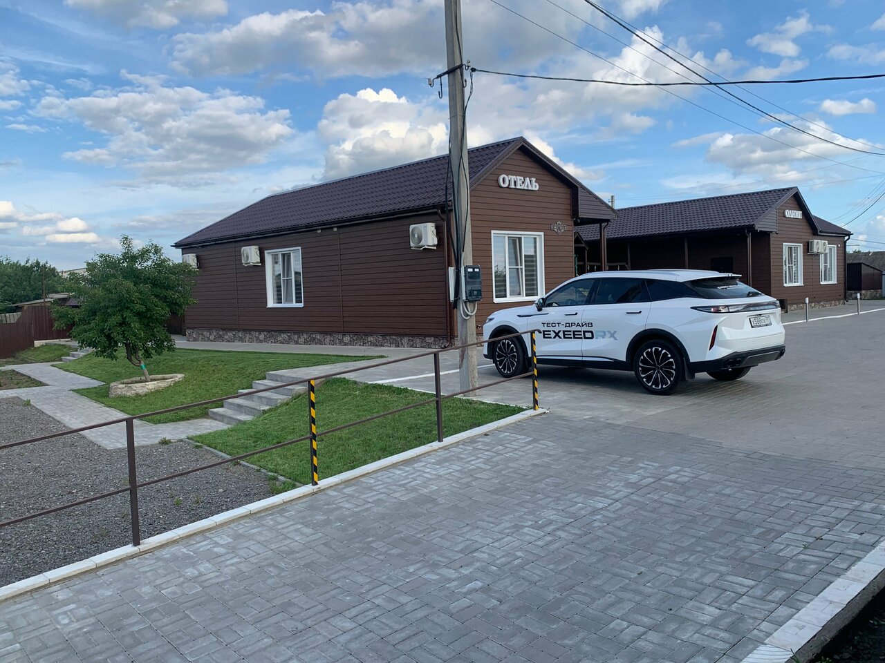 Номера новые, чисто помыты с хлоркой (зашли в номер, там прямо ей пахло, что порадовало), обслуживание супер, вежливый и приветливый персонал, есть всё необходимое: кондиционер, холодильник, чайник, кружки, фен свежее постельное бельё и полотенца, вообщем даже придраться не к чему! , Территория гостиницы красивая, можно сделать клёвые фотки. Пока нет кафе или столовой (сказали, что над этим работают и в скором будущем всё будет), но это не страшно, так как прямо напротив — ‘Пятëрочка’, Были проездом, рекомендую не проезжать мимо!