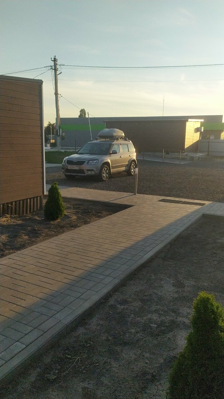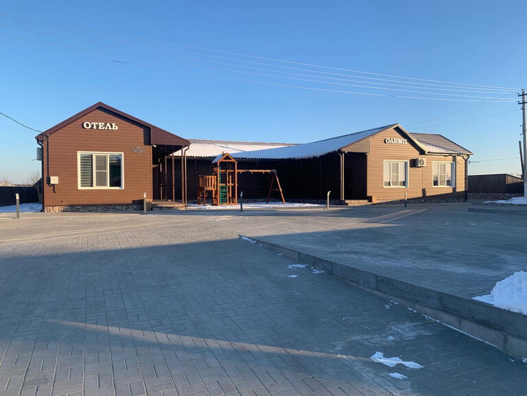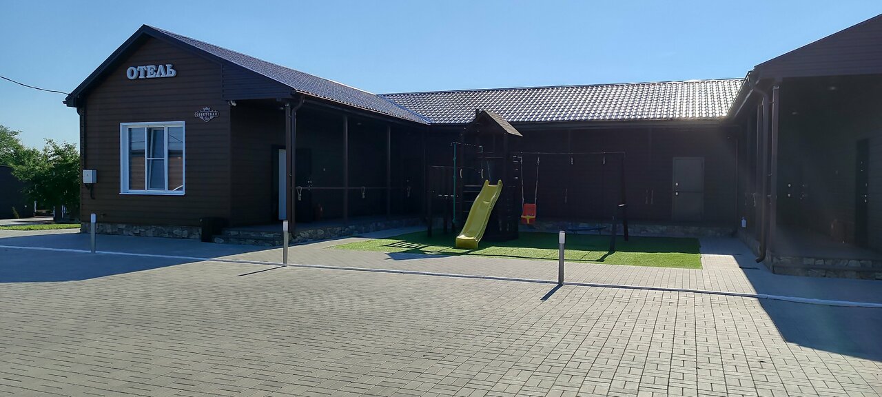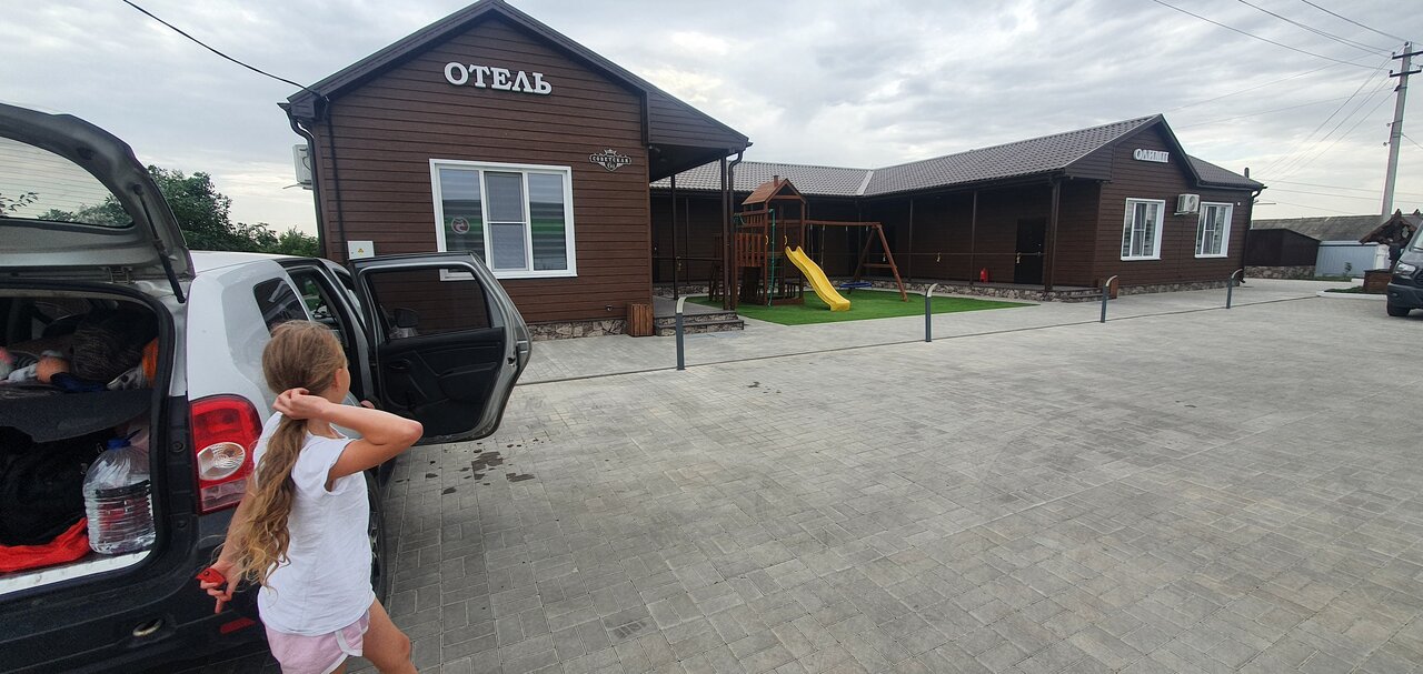 Отель выбрали для ночлега по пути домой от моря. Очень хорошее место для ночлега: в номере всё необходимое и ничего лишнего. На улице есть беседки и детская площадка — нам не надо было, но кто-то жарил шашлыки. Прямо около отеля магазин ‘Пятерочка’ — тоже очень удобно. Единственный нюанс — расстояние до трассы. Минут 15 ехать надо в сторону.