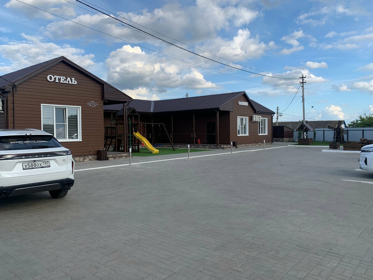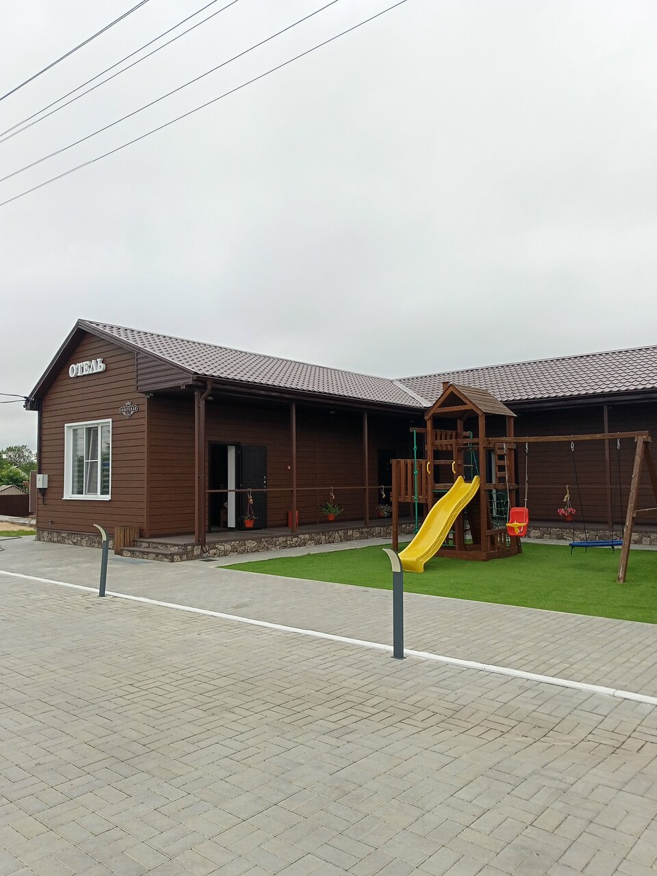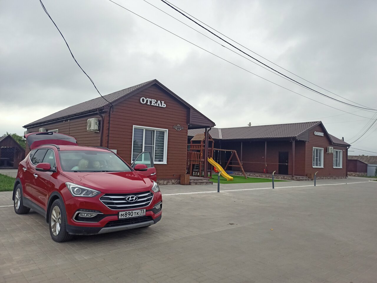 Отель выбрали для ночлега по пути домой от моря. Очень хорошее место для ночлега: в номере всё необходимое и ничего лишнего. На улице есть беседки и детская площадка — нам не надо было, но кто-то жарил шашлыки. Прямо около отеля магазин ‘Пятерочка’ — тоже очень удобно. Единственный нюанс — расстояние до трассы. Минут 15 ехать надо в сторону.