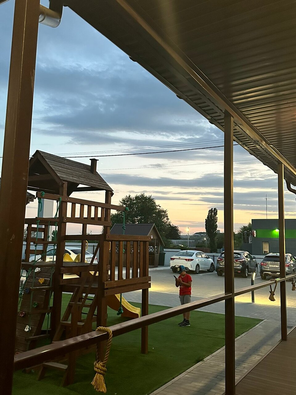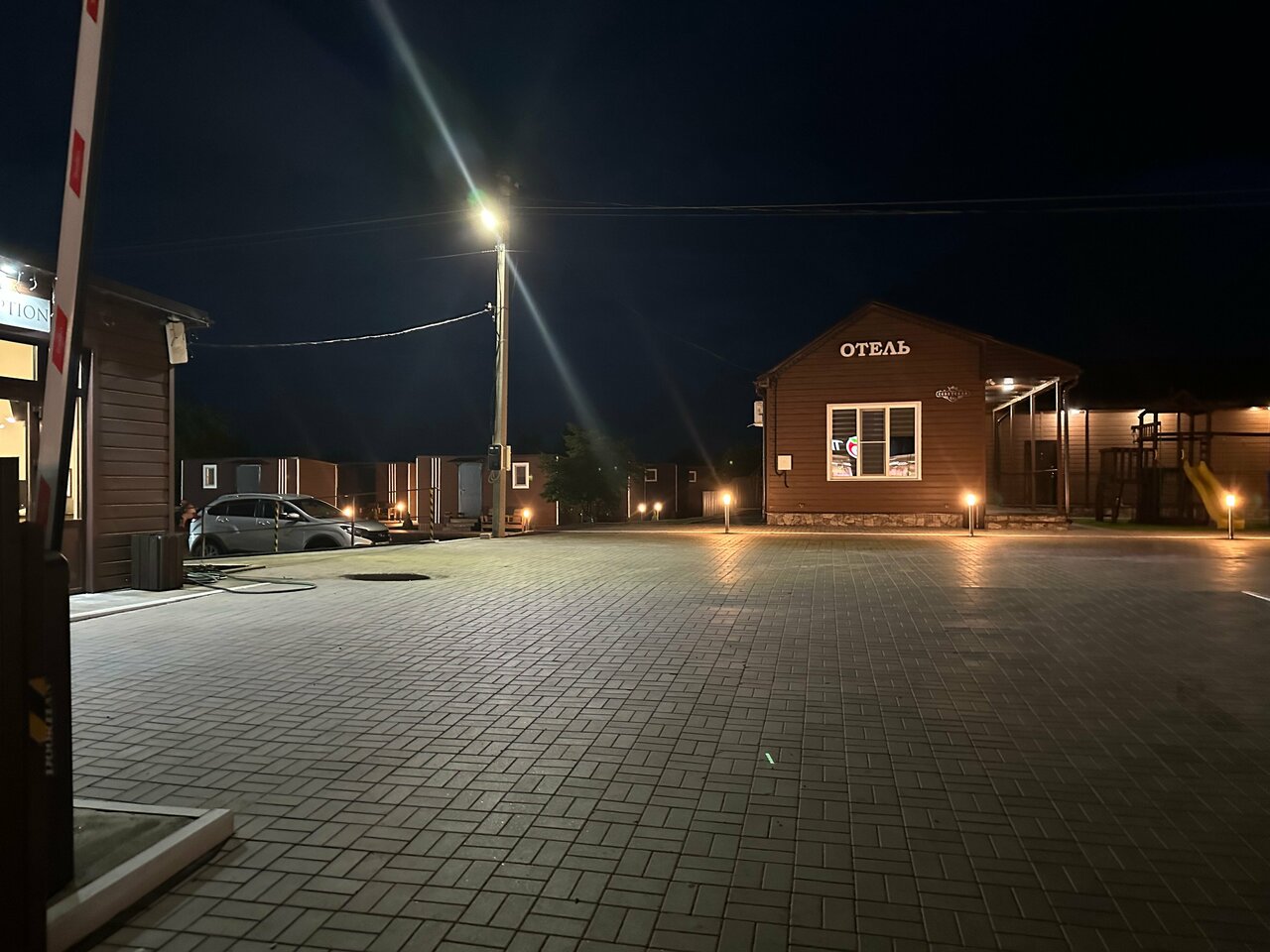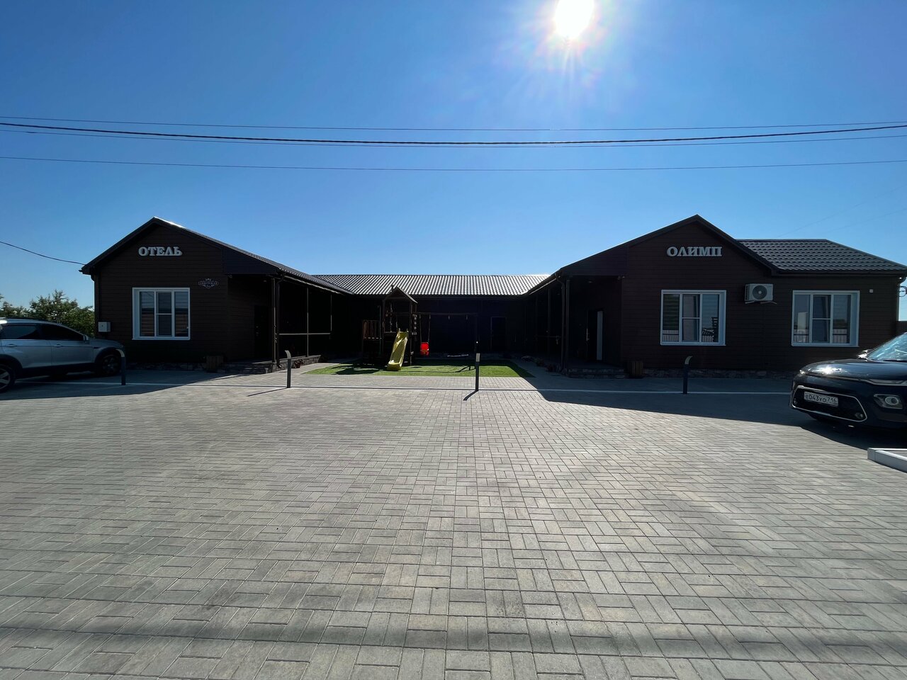 Классное место переночевать. Останавливались дважды. Очень приветливый администратор. Чистые номера, удобные кровати. Мы приезжали ночью, территорию не удалось разглядеть. Перед номером площадка. Магазин напротив. Советую!