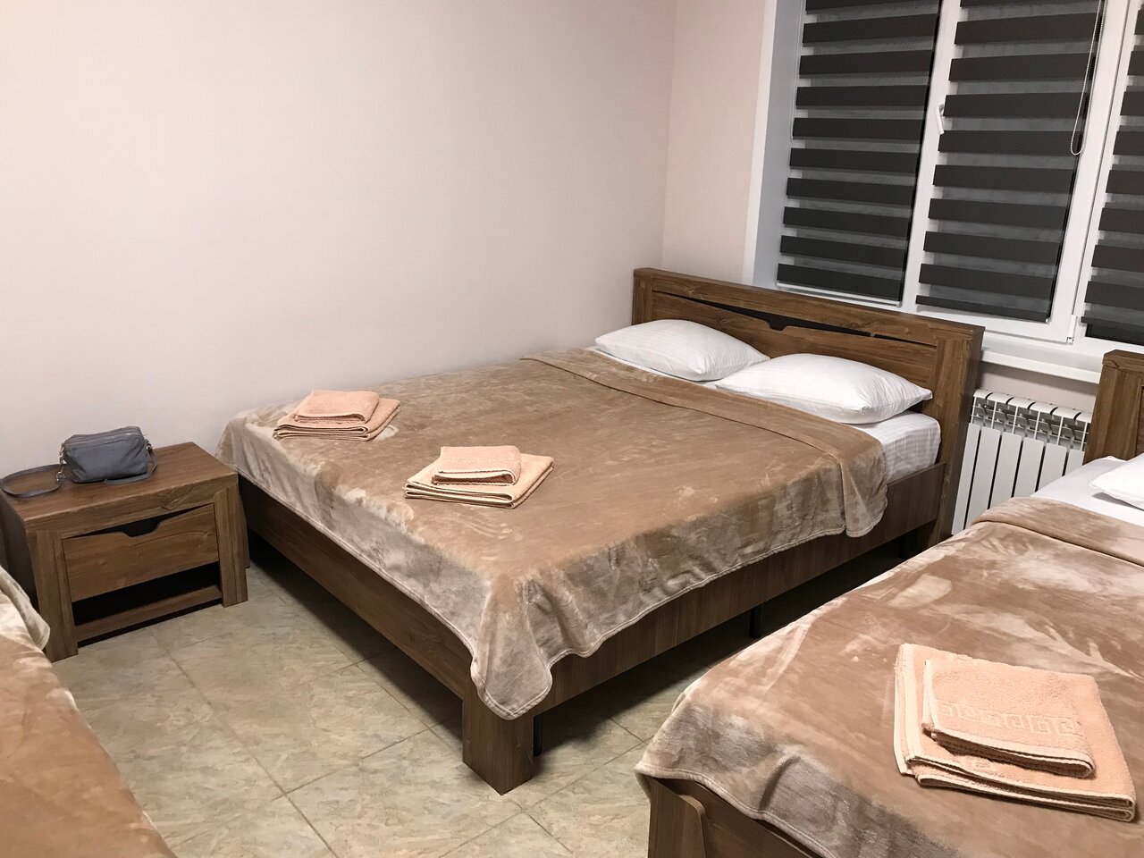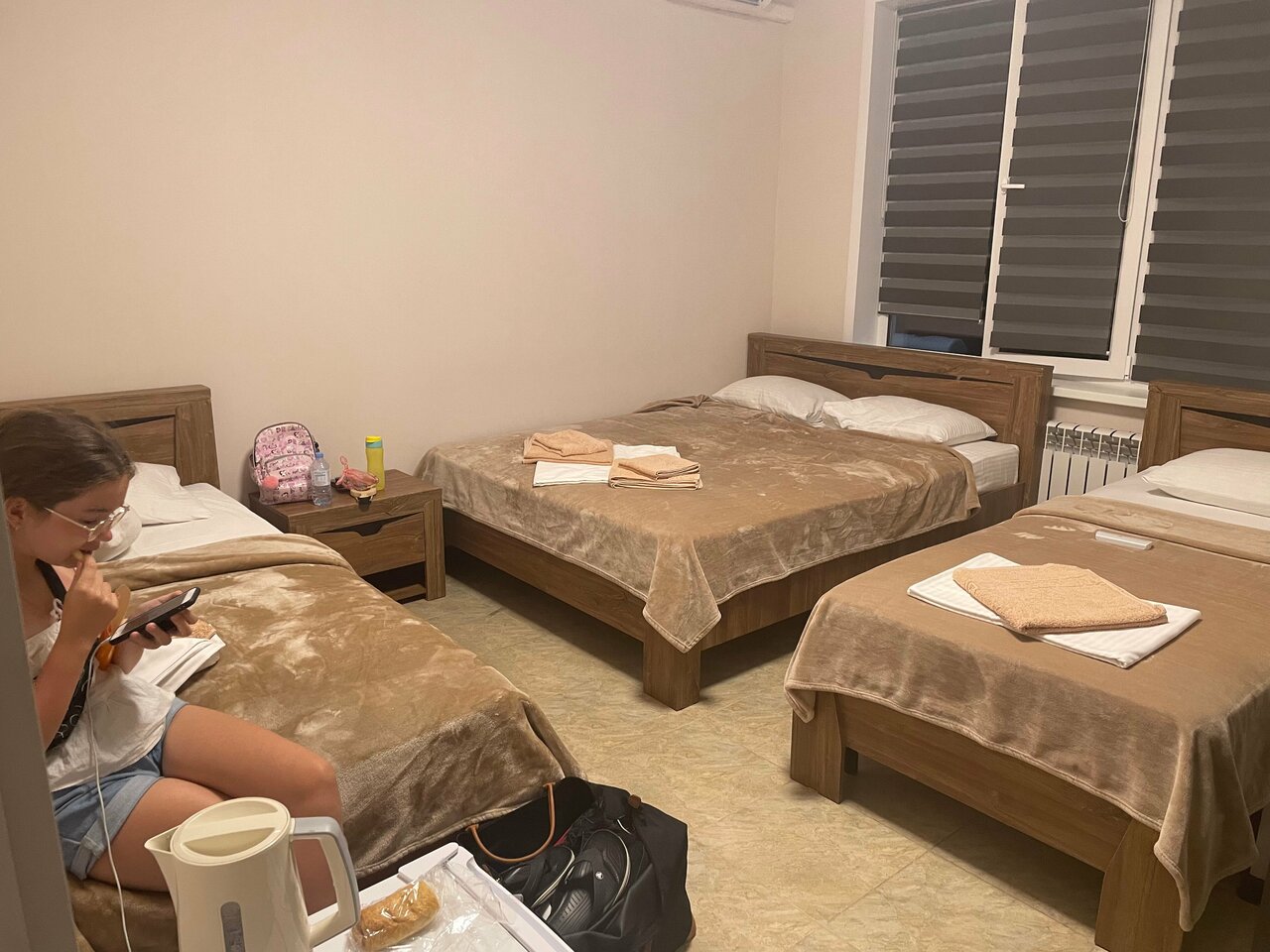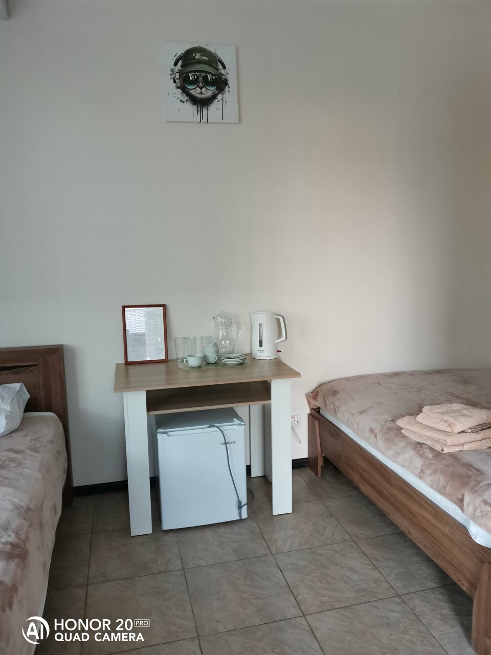Чисто, удобное расположение для тех, кто едет с моря не по м4 (иначе проезжаешь лишних 13 км, потом обратно), среднерыночная цена. Разрешили разместиться с 3 детьми (хотя не понимаю, в чем проблема и нужно уточнять у хозяина можно разместиться или нет (можно раскладушку предложить)). В 4 местном номере 2спальная кровать, 2 односпальные кровати, кондиционер, тв, микроволновка, чайник, чашки+блюдца+ч.л.+ стаканы на каждого человека + комплект полотенец.