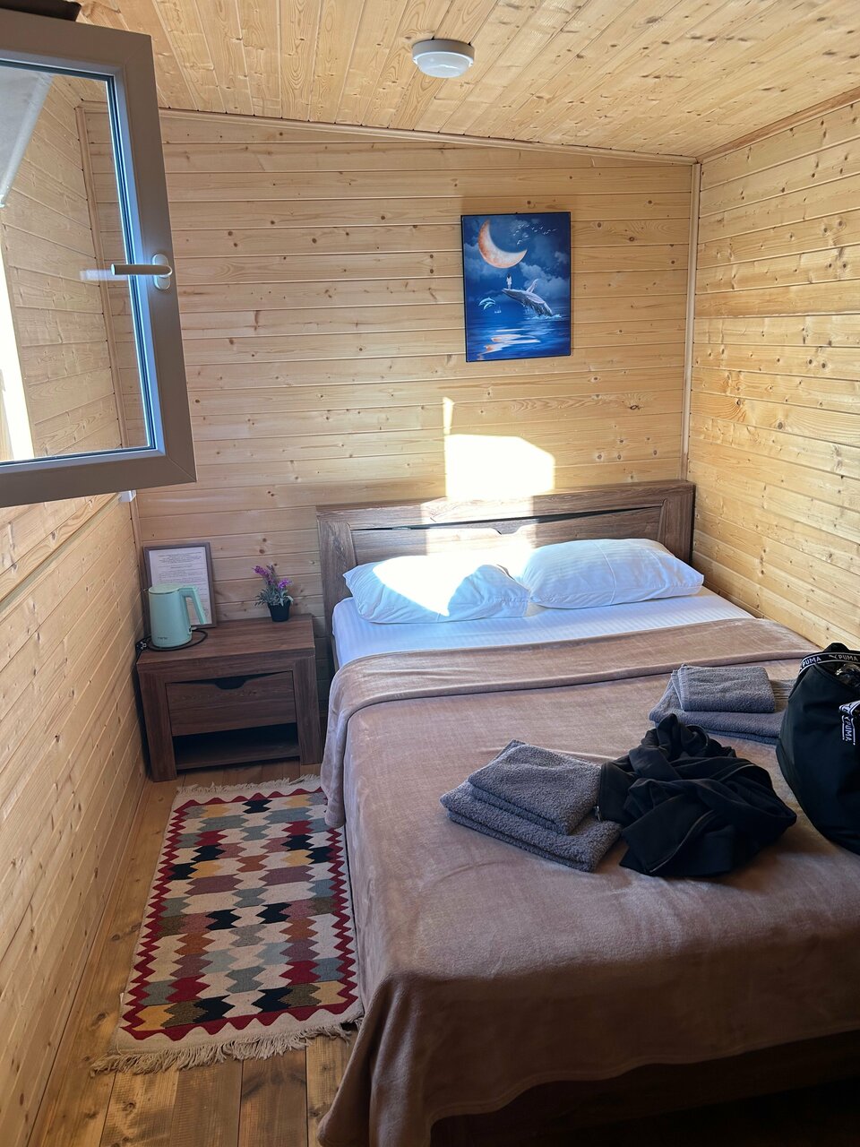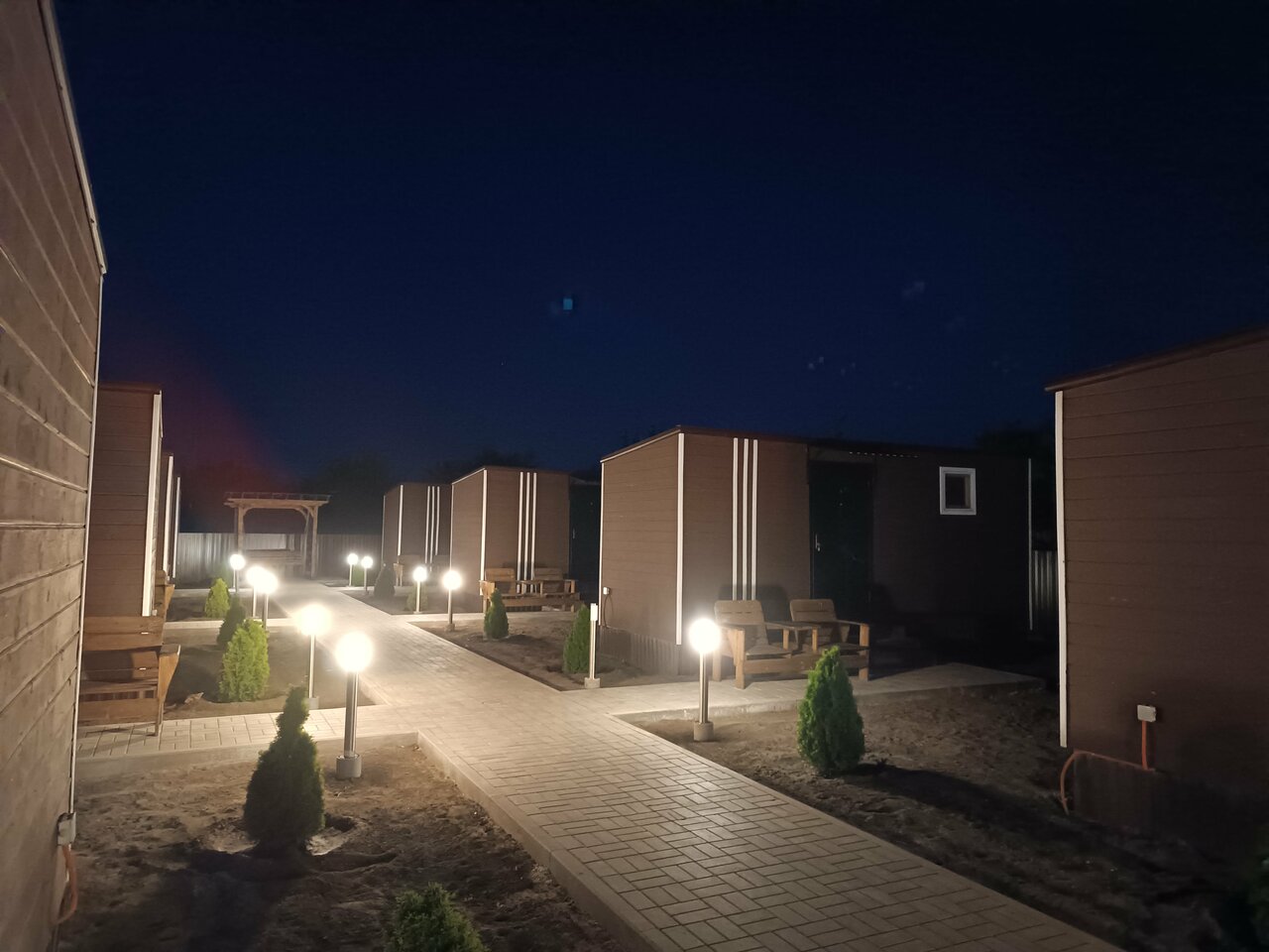Класное место, все удобства, уютно. Через дорогу есть пятерочка. Единственное у нас небыло одеяла и мы плед засунули. Приехали ночью и уже не хотелось идти на ресепшен. Територия прикольная. Ночью было холодно!